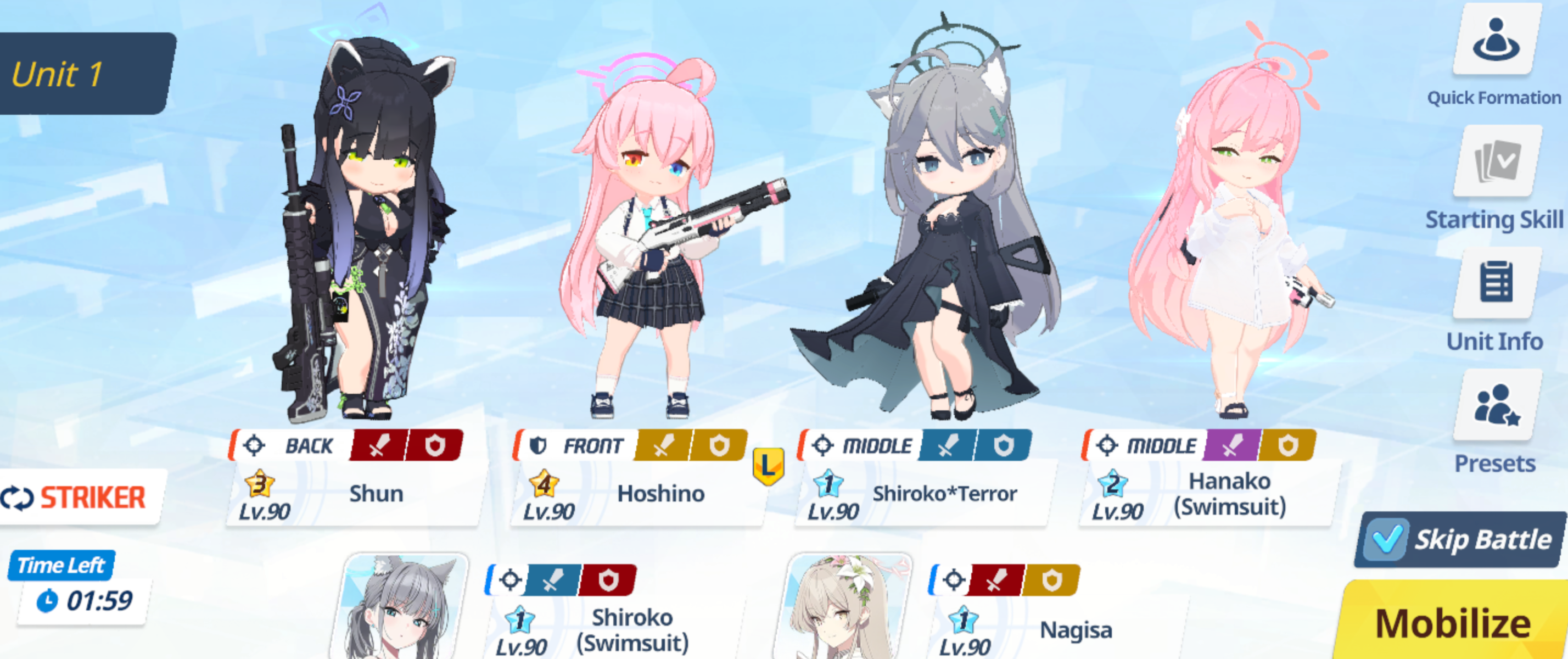 >>553768840>what the fuck am i doing wrongHanako mizugi is good but not so good. She can shutdown Shiroko terror and Marina but dies easily to Iori.Hoshino is a good tank but she needs a lot to survive and do damage. Marina and Reisa can work better with you team, Shun doesn't help much if you team die too fast.