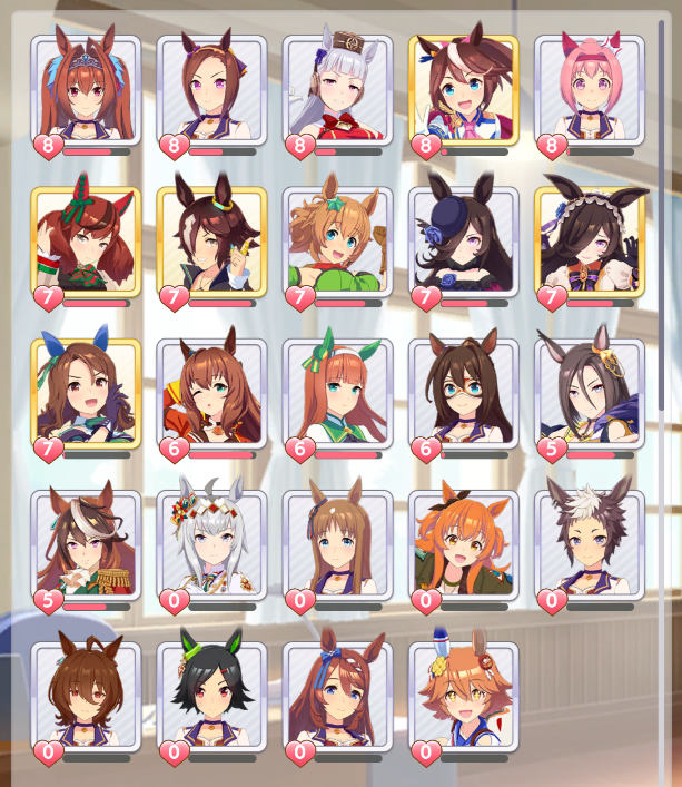 >>553758401Definitely easier to show what I got. Aside from those, I want McQueen, Opera, Bourbon and Doto. But I won't pull trainees until Cheerleader Natie though.