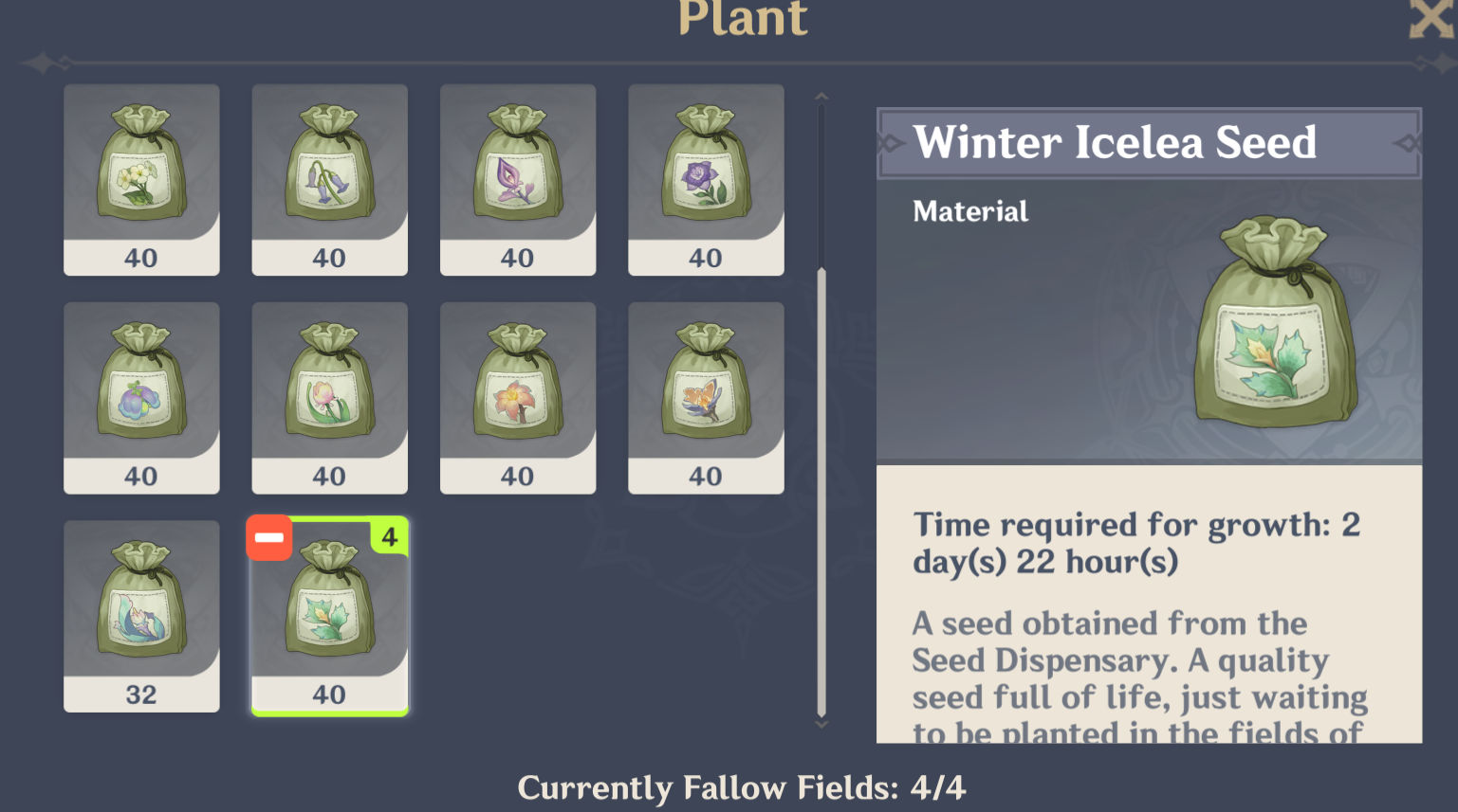 >>553759919Those take 3 days to grow. It's pointless because you can farm 70+ and then do another 70+ before those would grow. Last 30 come from the AQ
