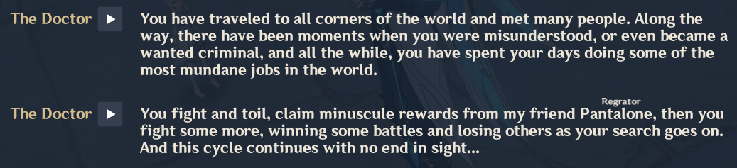 The Traveler should've just quoted Pinhead to Dottore.>"Welcome to the worst nightmare of all... reality!"