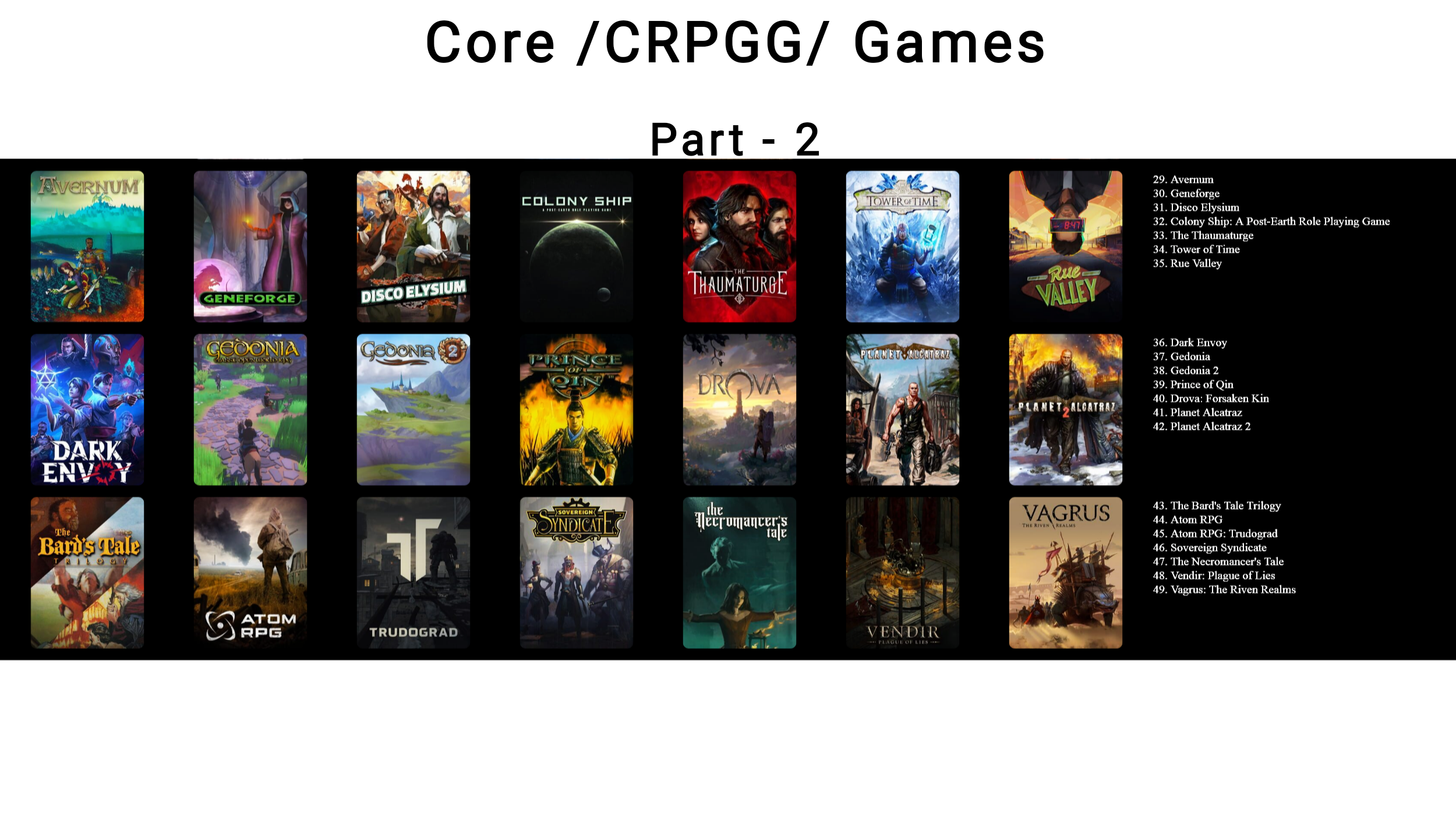 >>553774468Distance between rows should be larger than between games in a row. Right now structure suggests you should read it in columns.>core games>Dungeon Rats, BG3, random history games>no BG1,2, IWD or Planescape>coreAre you trolling. Also Shadowrun games can be presented as a trilogy.
