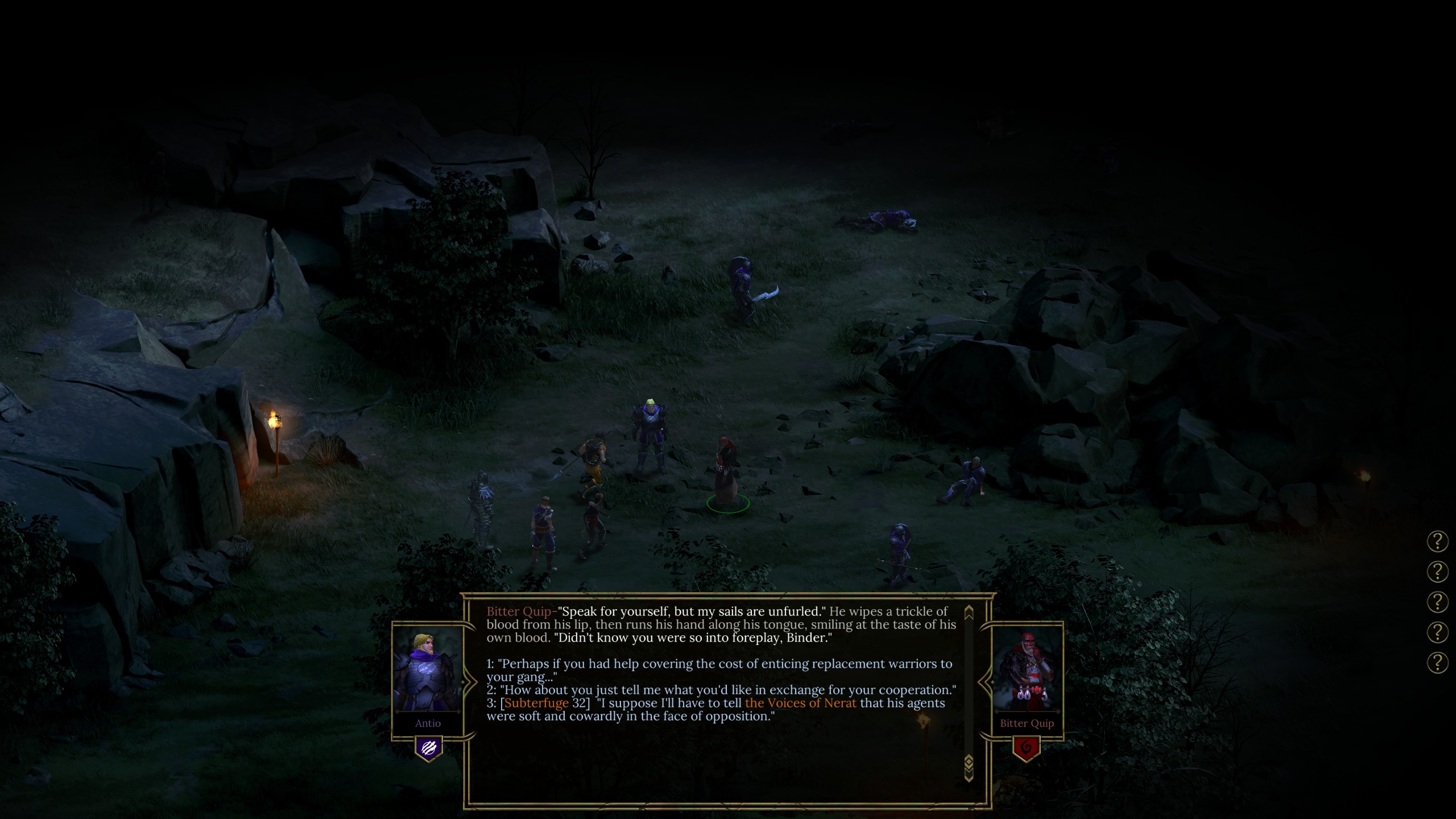 >>553842542I always take pasqal as he has very unique insights due to being a priest of mars instead of a citizen of the imperiumI often take heinrix and yrliet together because they have wildly different viewsAnd adding onto that I often take marazhai on top of it too for the same reason, plus he likes riling up everyone else so his commentary is funThat's mostly it, cassia is kinda boring, argenta is mostly one note (for the emperoorr!!!) but sometimes I like having her along just because, Idira I often bring with me but to be completely honest I couldn't even tell you what most of her dialog is like I just don't even remember, Abelard is in my party because he's cool but he's nothing special although he has nice grounded comments compared to everyone else due to his job, kibellah is lamer argenta, and I haven't tried out the arbites guyUlfar is like cooler argenta