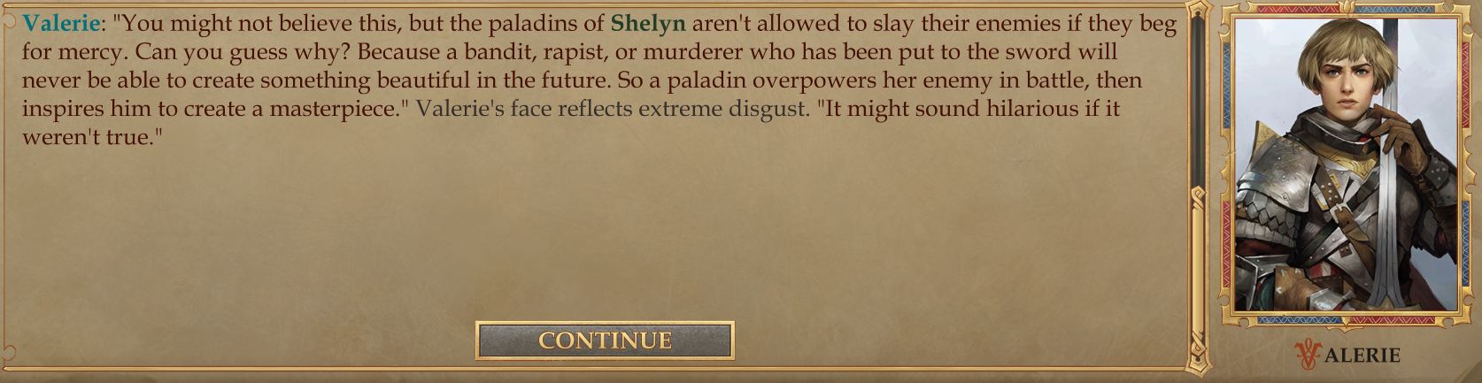 Cute Valerie Edition>What is /crpgg/?This general is dedicated to the discussion of computer role playing games such as:Arcanum, Baldur's Gate, Disco Elysium, Divinity: Original Sin, Dragon Age, Expeditions, Fallout, Icewind Dale, Jade Empire, Necromancer's Tale, Neverwinter Nights, Pathfinder, Solasta: Crown of the Magister, Pillars of Eternity, Planescape: Torment, Shadowrun, The Age of Decadence, Temple of Elemental Evil, Tyranny, UnderRail, Vampire: The Masquerade – Bloodlines, Warhammer 40k: Dark Heresy, Rogue Trader, Wasteland, Wizardry, and many others.>Recommendations:https://files.catbox.moe/gx6f4u.pngPrevious: >>553691756>Thread QuestionHow short is too short?