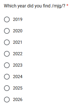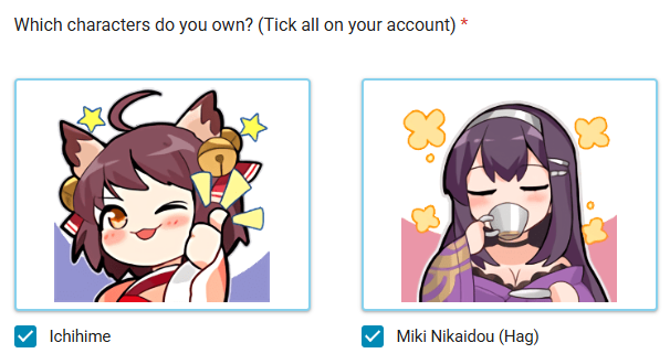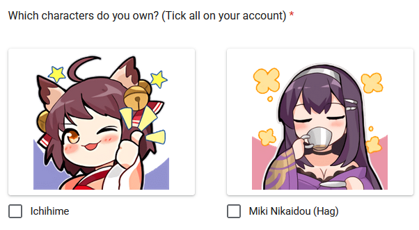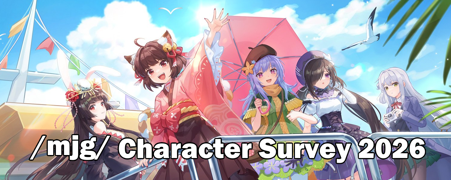 Announcing the /mjg/ character survey 2026!This is a short survey to find out the most popular majsoul characters in /mjg/ and to harvest your data. I will collect results for a week and then compile them into something for the thread near the start of February.The first 4 sections are about your top 3 most used characters and all the characters you own. The last section then features some general mahjong questions just for fun.Survey here: https://forms.gle/fzXSsLYHYvdQyAvb9