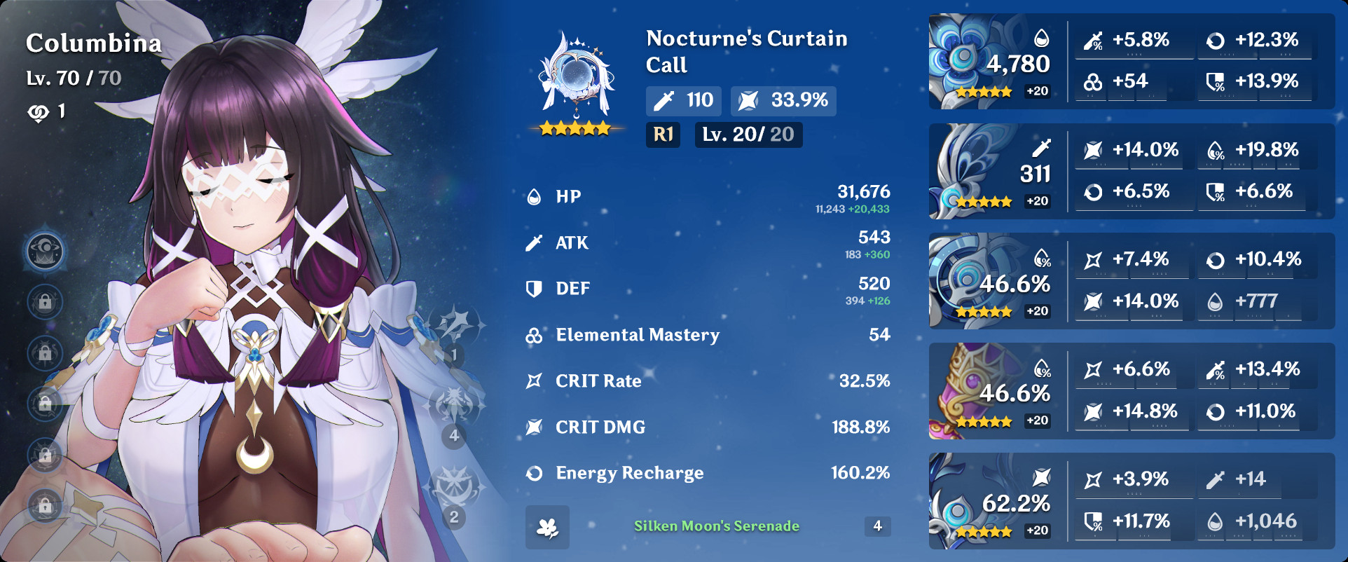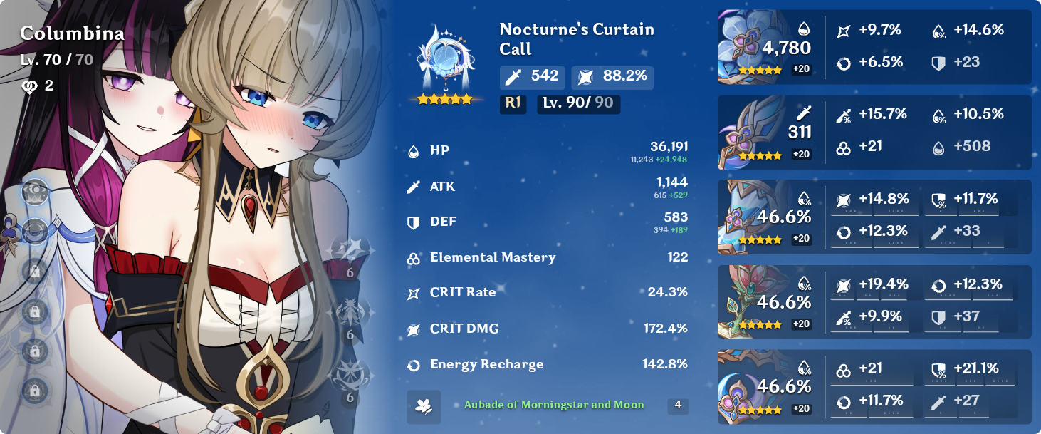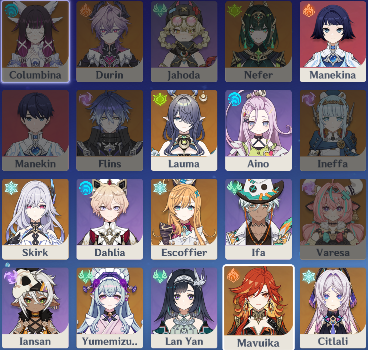 >Current character banner: Columbina, Ineffa, Ifa, Sethos, Fischl