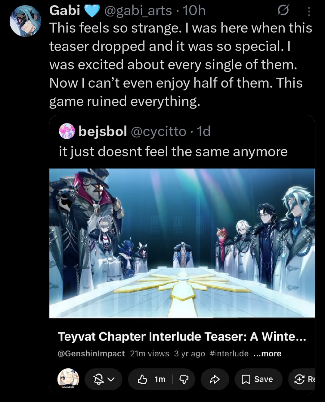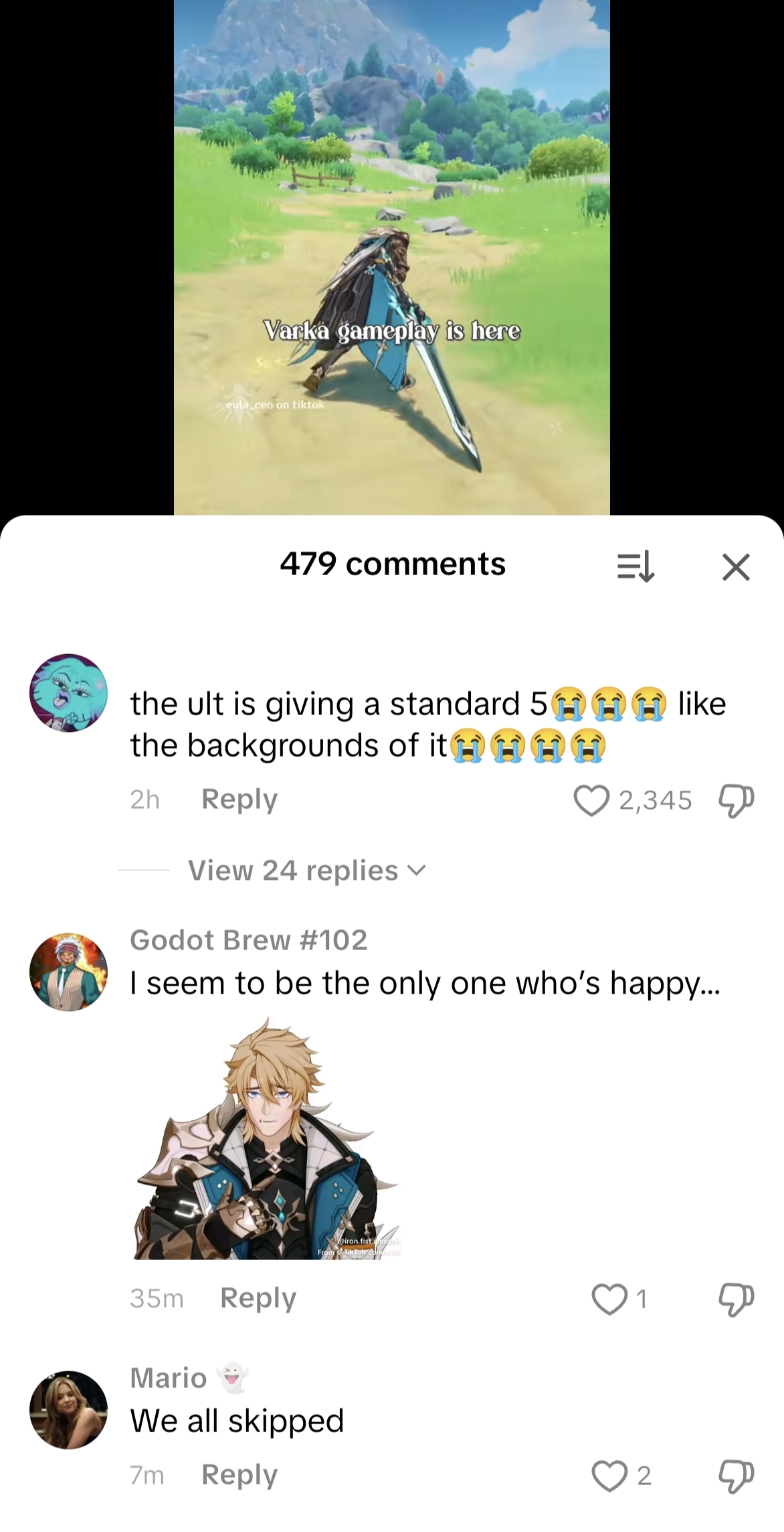 Wow tiktok really hates varka's animations. They say his claymore swings look too floaty and unfinished and his ult just looks weird and boring.