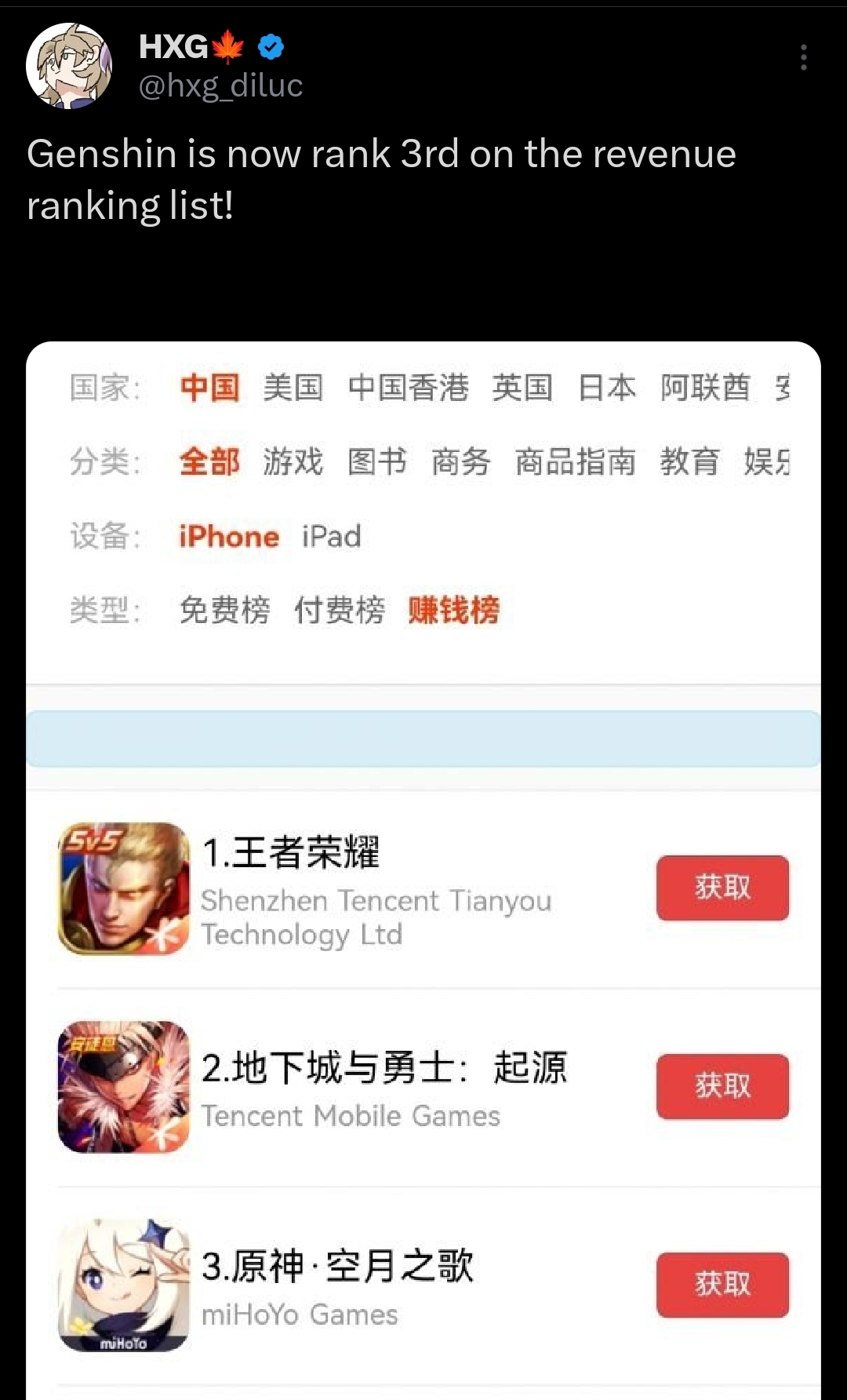 >>553799790Genshin has never beaten Tencent's CN cashcows