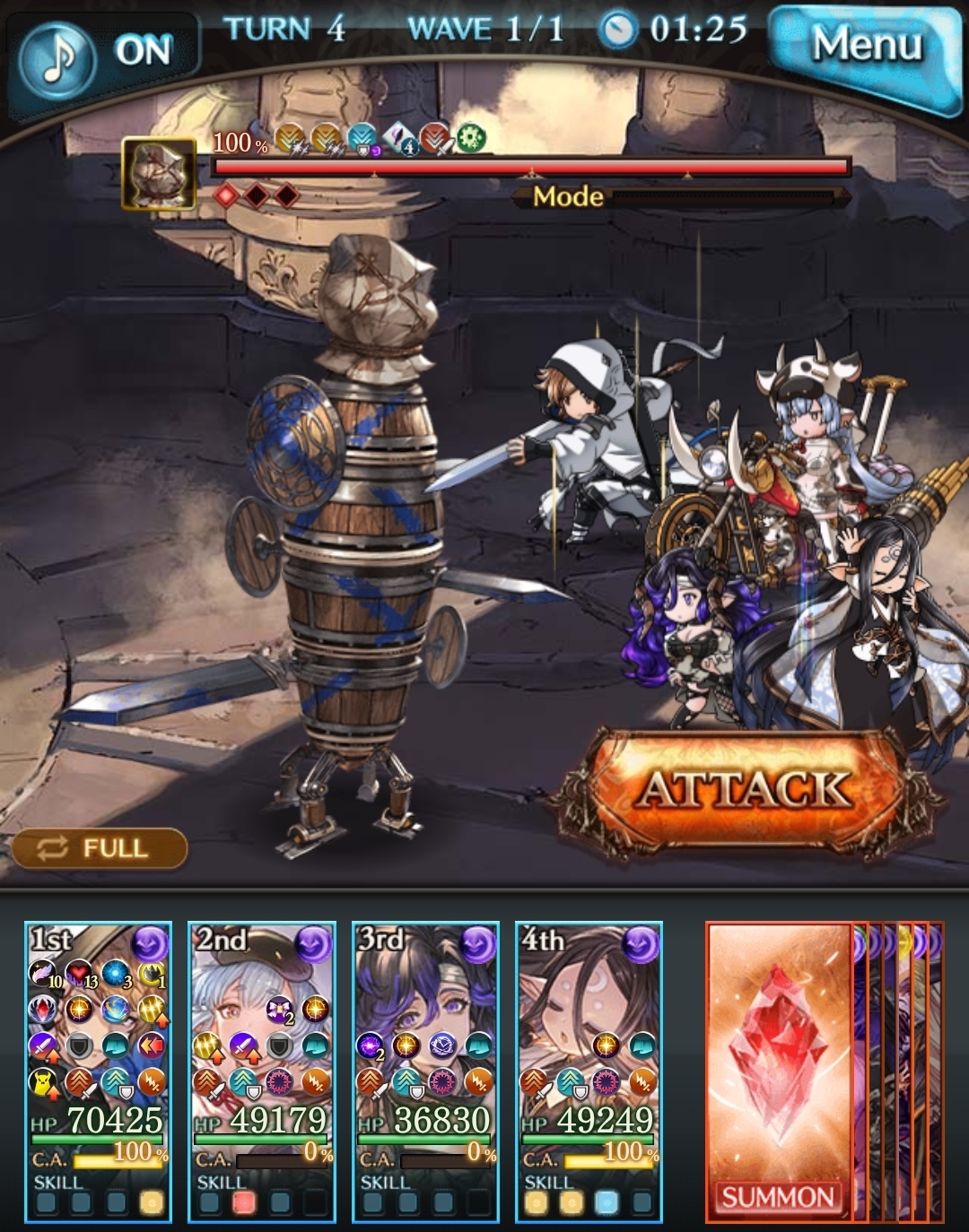 >>553816761I'm rank 247 atm, so I can't even Versusia yet. Still, it's good for me to know these setups for when I'm able to fight herI tried to use frontline Nier and Death call her after using all her skills on MC to see if that changed anything. I figured the CA reactivation would let me use Triple Zero faster, and it did...but somehow it still didn't let me use Unlimited Boost any sooner.That said, the damage on this team is absolutely nutty. Especially on the turn that Momoilogia's enhanced S3 lets you press Cow's skills twice. Imagine how much more damage I could squeeze out if I had Versusia summon...