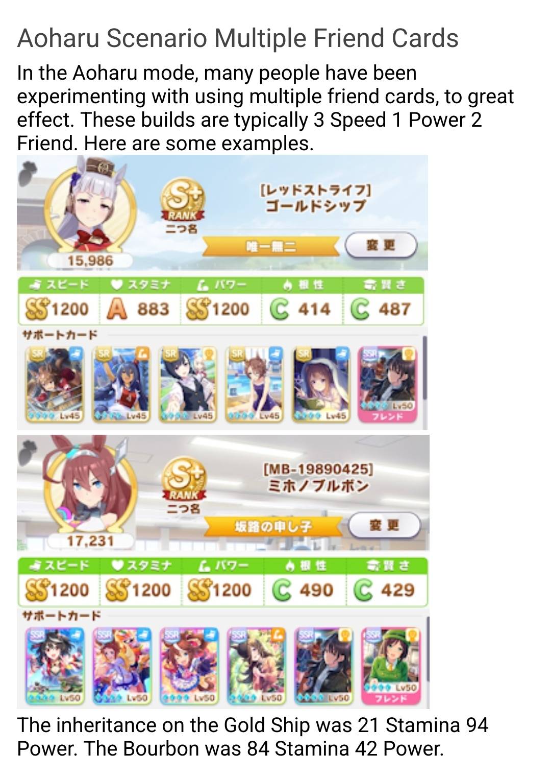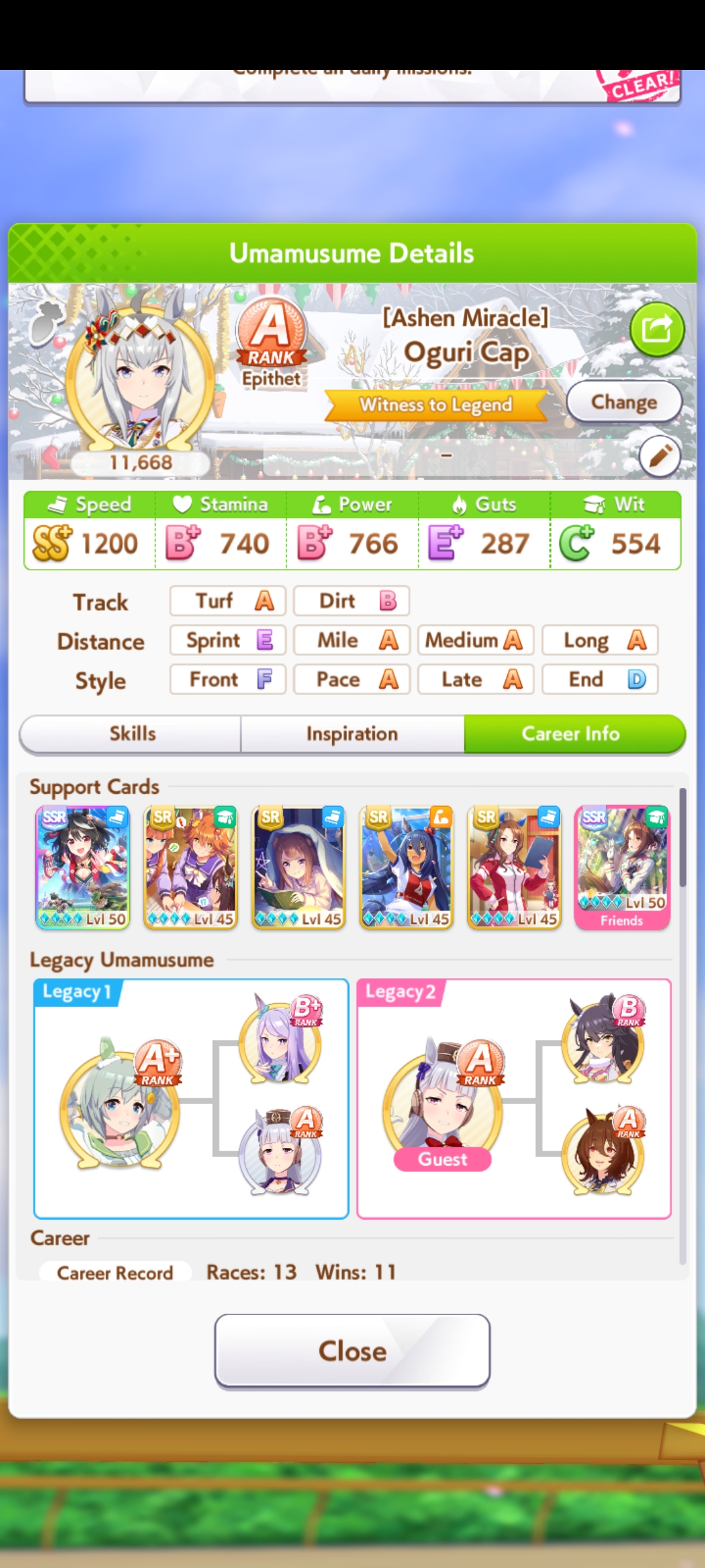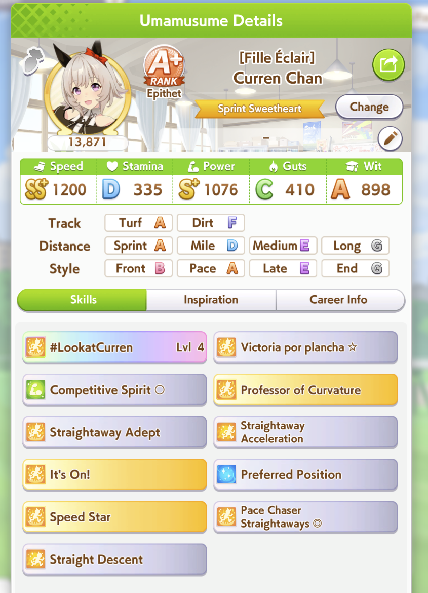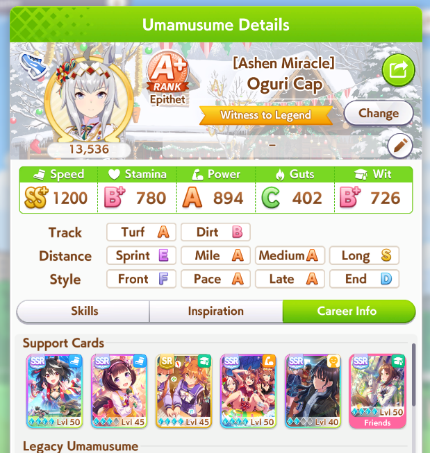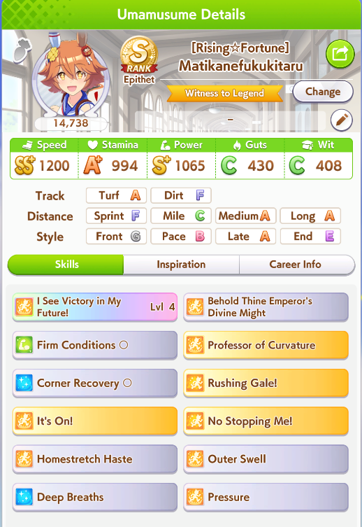 >>553812093try 2 speed 2 wit 1 power. and find some URA finale parentsi've only built 6 xoguris but my lowest roll was 12.5k and my highest was 13.9k, this is my current one for cm8 and i'm still going for higher