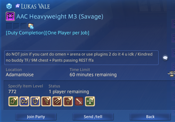 >>553831978Dps players be like>do I have to penta meld?>can I use last tiers food?>I don’t want to pot except on the clear pull>can you just heal through this mechanic for uptime?….>ENRAGE>wtf healers, do more damage.