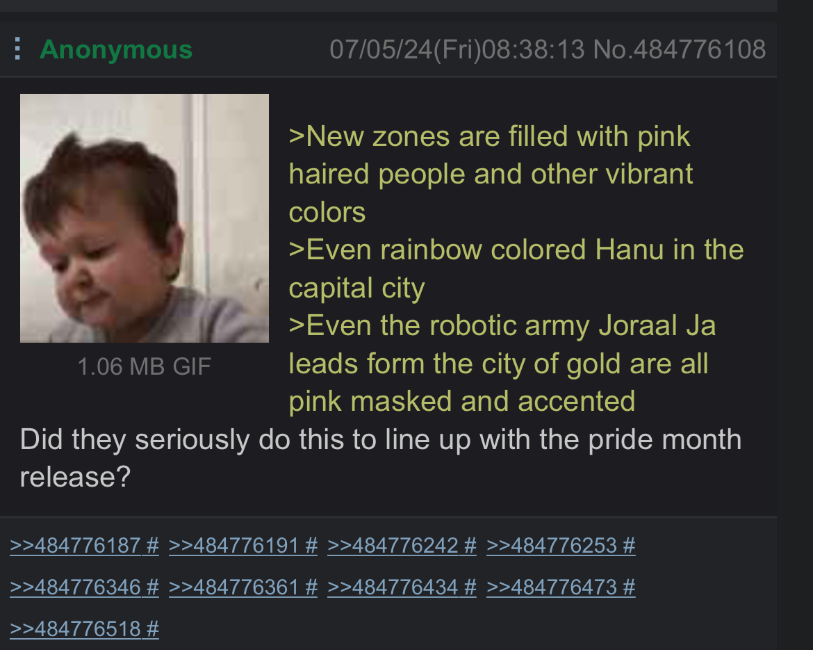 Wait until you notice the Dawntrail opening screen has the colors lined up like a trans flag. This was supposed to be the boot on the face of chuds and instead it was a death knell for woketards (arguably, those Treno lalas are super faggy and proletariat themed).