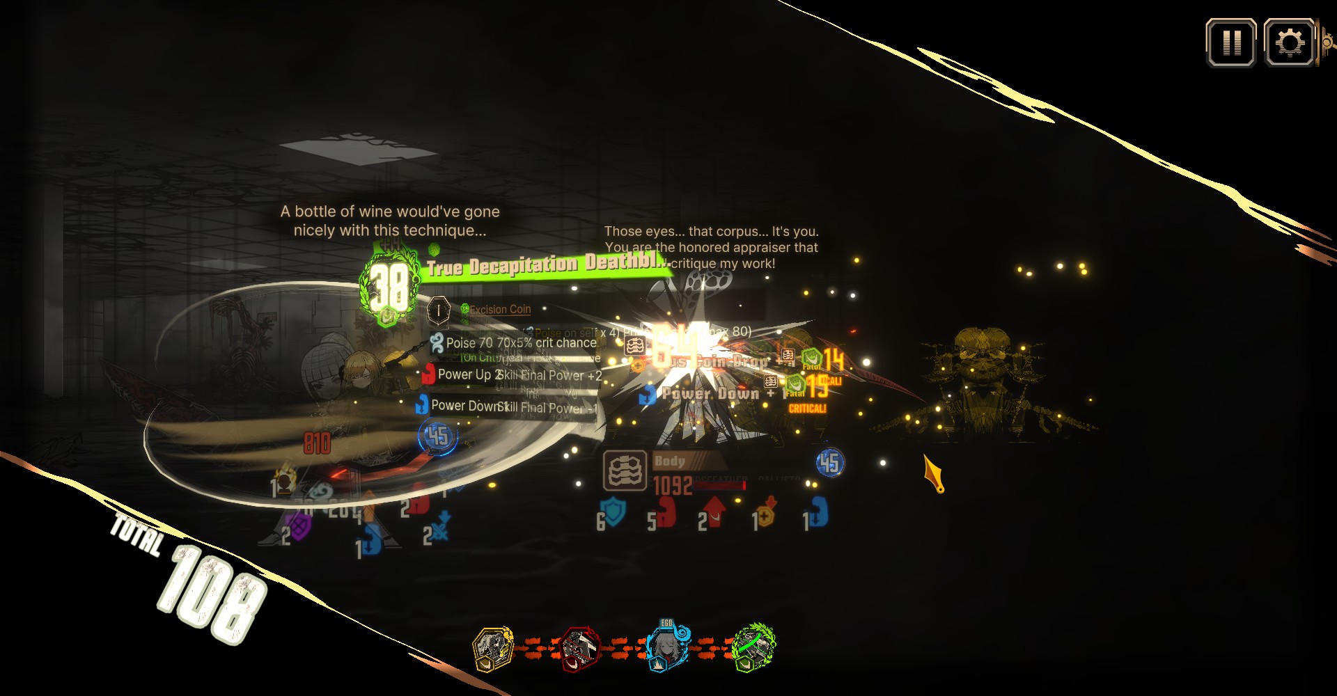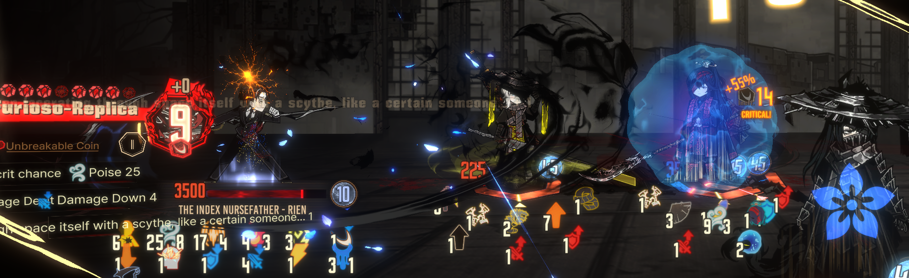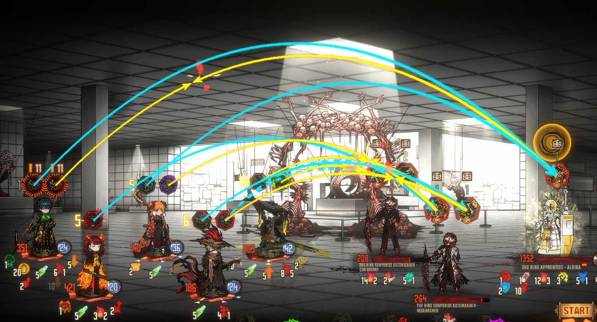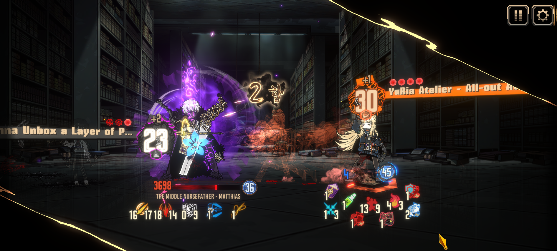 >Ryoshu is invincible>clash with green skills first for power down>winning clashes against yellow skill reduces afterimage (less afterimage stack less HP% damage on her nuke)>AOE skill(I can't remember which) that gets reduced damage depending on how many defense skill used this turnThat's prettty much it. The fight is a bit dumber this time around because its the same as Part 2 but more HP to run through.
