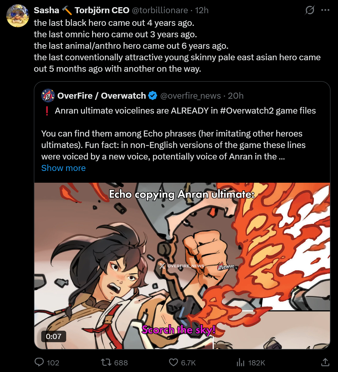 >>553915283fucking hilarious how the devs thought this would make the community pop-off. all of the main twitter personalities who took over the games discussion when everyone left for rivals are having a meltdown over yet another generic hero.