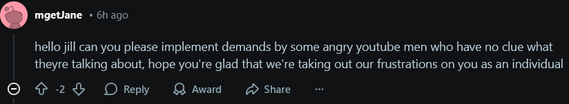 >people are writing long comments to jill and are actually expecting xim to do anything