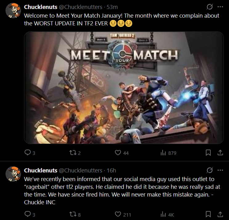 The Scout tried to main Medic.He quit when he realized he couldn’t heal himself emotionally.Why does the Soldier hate puzzles?Too many pieces, not enough explosions.The Pyro wrote a book.Critics say it’s hard to read, but very warm.The Heavy doesn’t skip leg day.Leg day skips him.The Engineer built a time machine.It still only works in Texas time.Why did the Spy fail at stand-up comedy?His punchlines always came from behind.The Demoman tried a sober lifestyle.It lasted one respawn.The Sniper doesn’t need GPS.He just waits.Medic lost his medical license again.This time it was for winning.The Scout says he’s the smartest guy in the room.Statistically, he is. There are just no other Scouts.