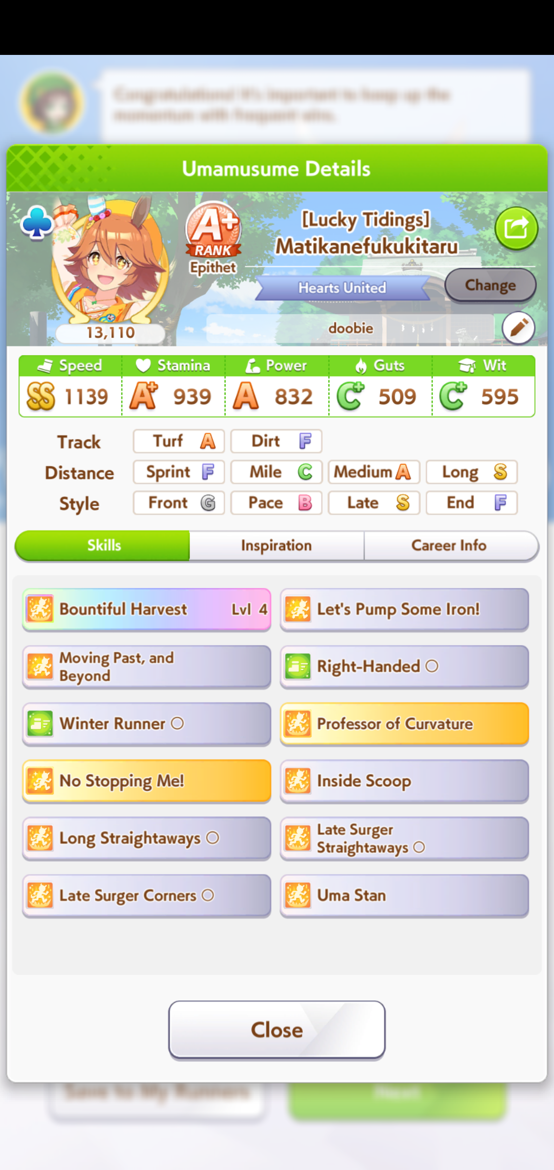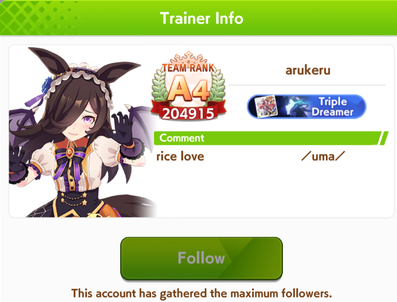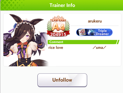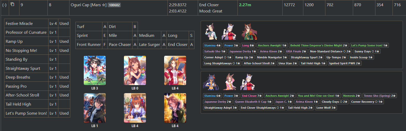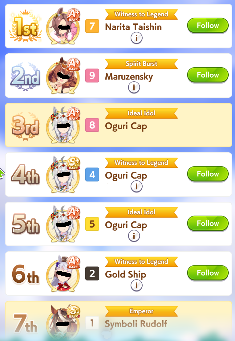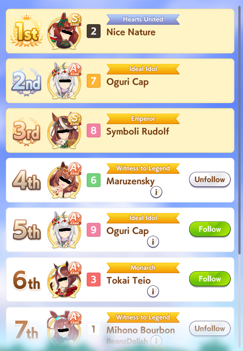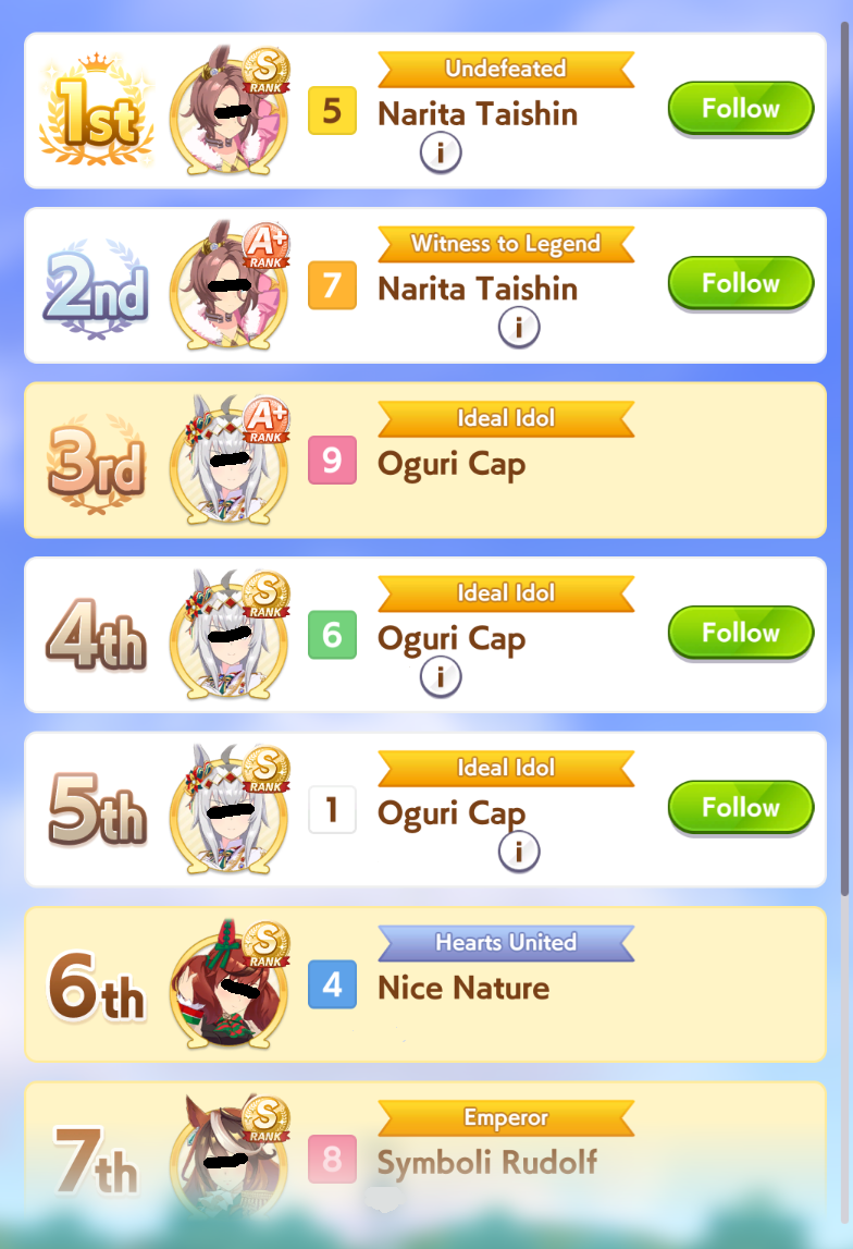 I've been consistently getting 1st/2nd with my shitty umas. Please humble me because i don't believe my jobbers are actually that strong, thanks.89006141