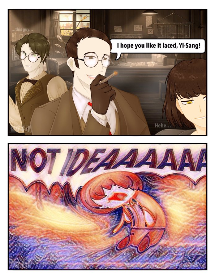 It was fun, I did enjoy fighting the strong bosses, but I think they might take a bit too long. Matthias specifically, but I loved him because I love the middle anyway. I loved Roach Emperor, and I think he was really fun to fight.Really fun canto, although it feels less Ryoshucentric and more focused on everyone. I guess it makes sense if they want to start pushing everyone towards the endgame, whichever Sinclair's future is. Reminds me a lot of Katekyo Hitman Reborn lol. I also love that his final move was Xichun's final move. I think it was cute that their strongest attack is the same. They truly are besties. Now I have two people who I know will get back the people they love (Heasu and Shu) eventually. This one scene with Lucio has me thinking, 'Lucio Heath looks doable,' and I would like him to have a tremor burn ID, but I also want him to get a middle ID.