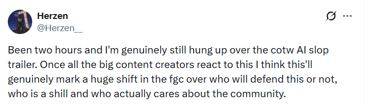 Not gonna act like this is changing minds though so we can cut that conversation here. Existing players don’t see an AI trailer and bail solely for that.Don’t need to defend poor company decisions but I won’t acknowledge the “this will make or break my purchase” fakeness either.