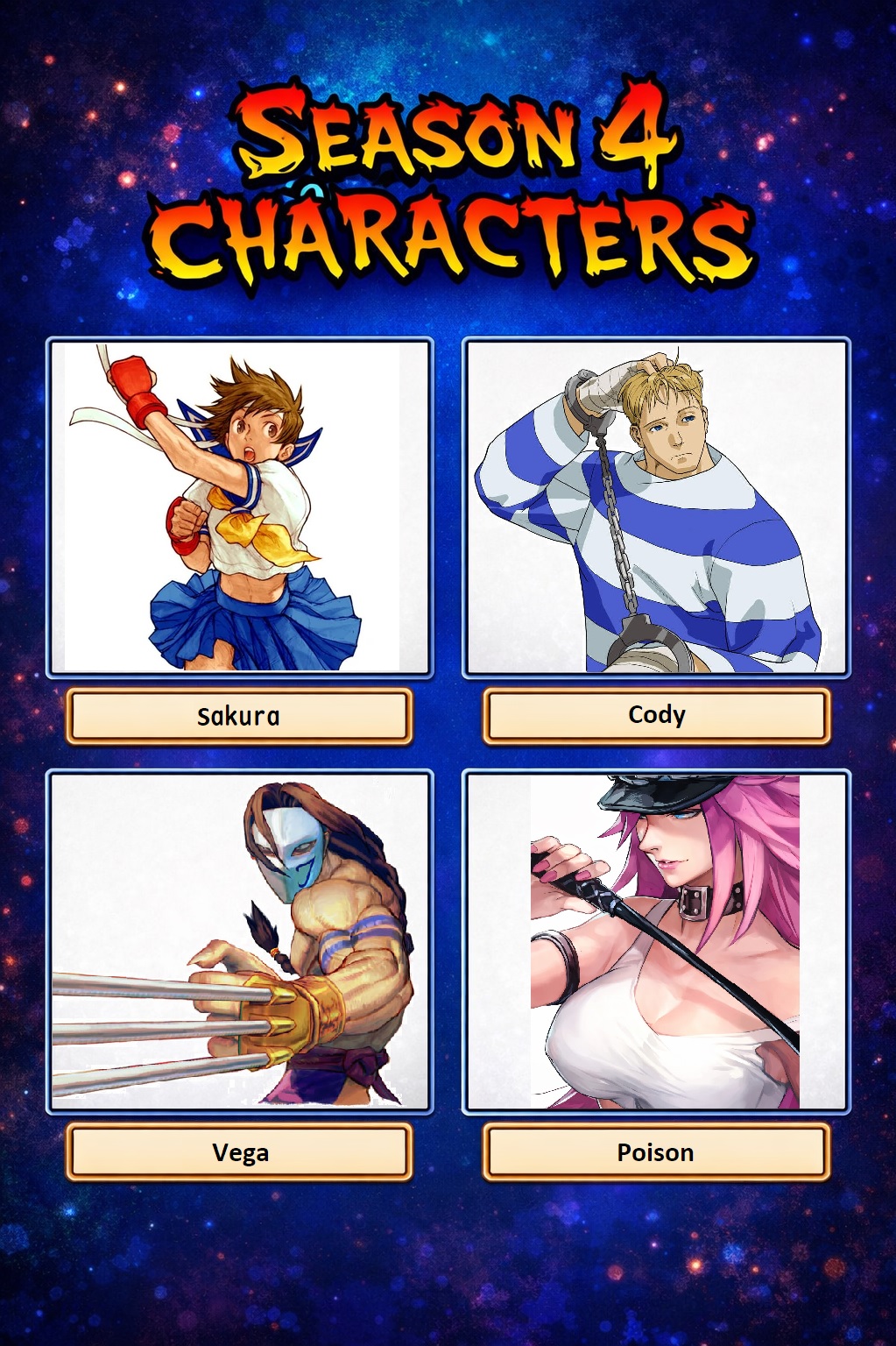 every character left for dlc is gonna be nuclearsakura, karin, ibuki, mika, makoto, urien, dudley, poison, menat, cody, q/gthe latter seasons will be completely stacked