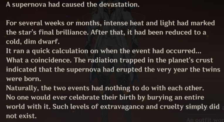 >>553938881>>553938957>reading through this stuff makes it feel like teyvat is just a fake world made by phanes/spaceship>twin said something like "it's always only been about us" in the natlan questdunno what to think.. is was teyvat "made" or used to trap the tabibitos specifically?