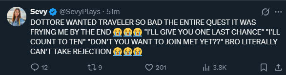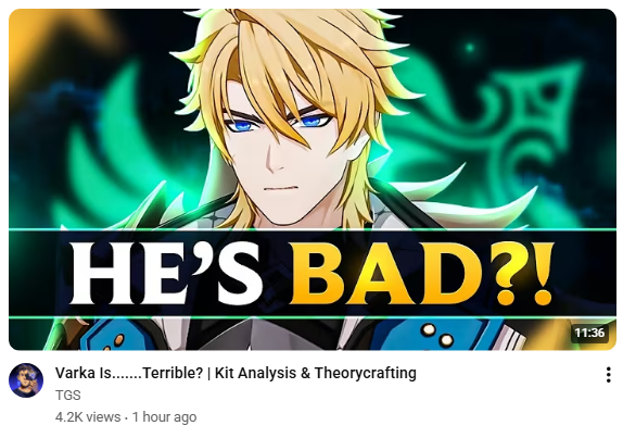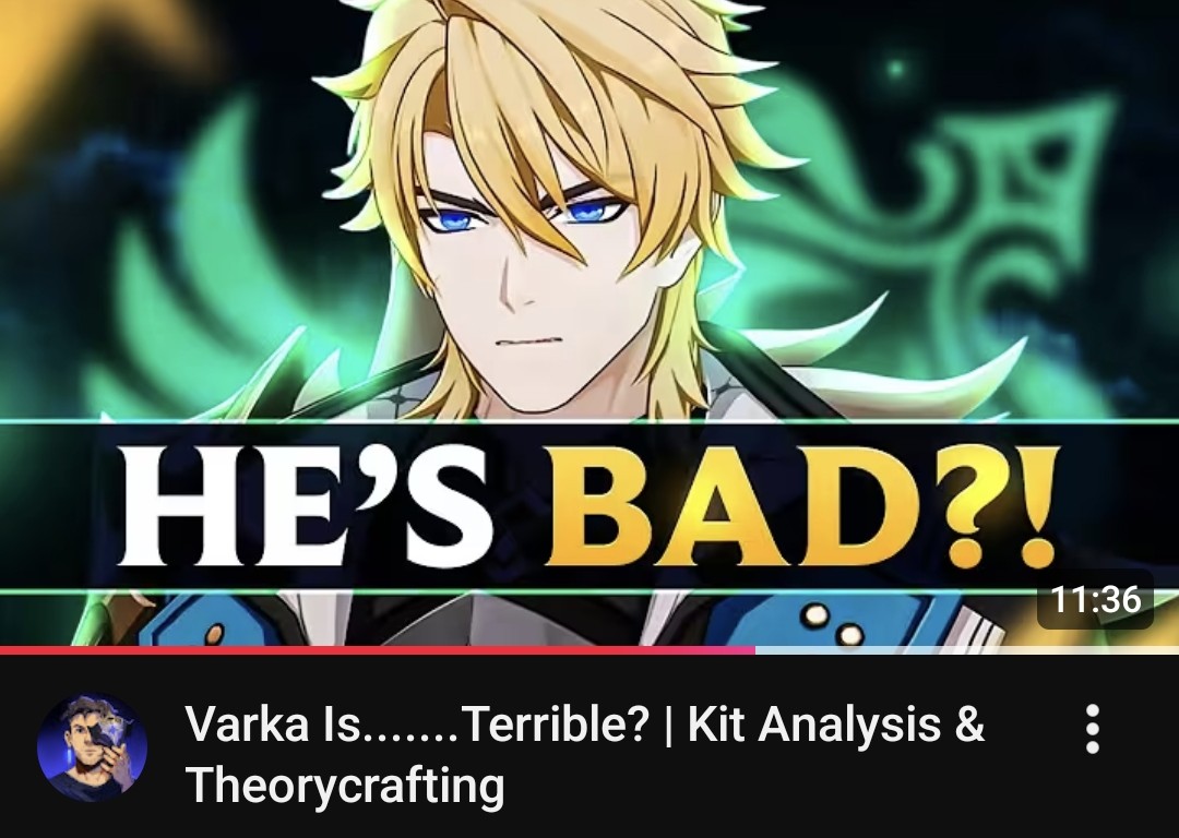 Coping aside, I think we are so fixated to powerscale based on "big numbers good" that we're overlooking the idea Varka is meant to be the most FLEXIBLE dps in the game, not the strongest (with biggest damage).Look at the current T0 dps units: all very strong, yes, but only with their respective setups or elemental type (or both).Why are we ignoring the fact Varka is the first true PHEC dps in the game? Not just with auxiliary damage for reactions like Chasca, but meant to be a 4-in-one you can change to fit your needs.Even if his damage is something close to Neuvi, that's still a pyro/hydro/electro/cryo Neuvi all in one unit! You don't even need to change his artifacts (that's why he scales better with attack) or weapon, just change his team.If he had the same DPS as Mavuika his value as a unit would be 4x that of Mavuika; simply unlogical.But if he turns out to be T0 ignore all that.