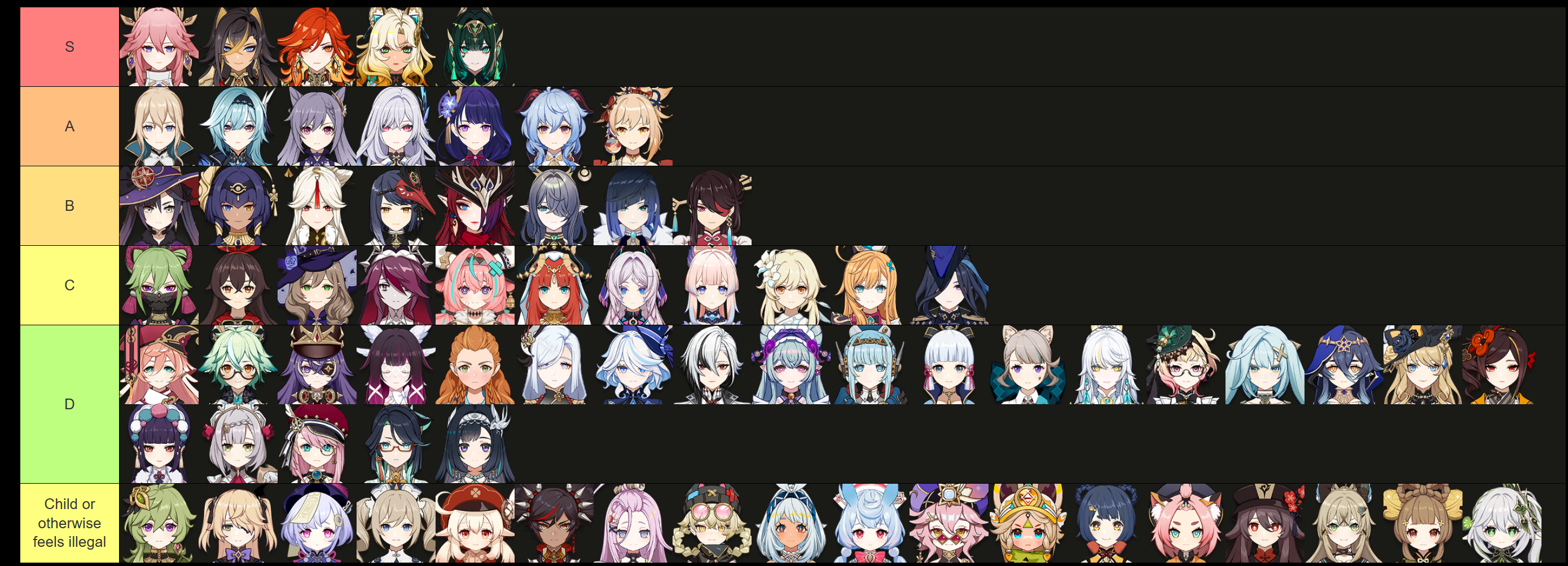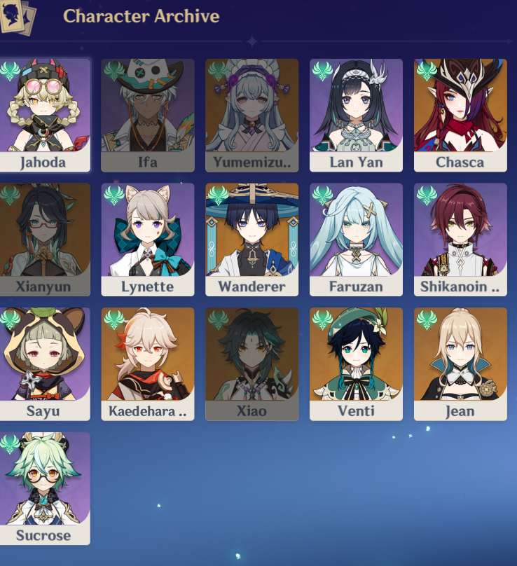 >>553950825From memory meaning I'm probably missing some>ENTighnari, Kinich, Paimon, Keqing, Ganyu, Sucrose, Candace, Charlotte>CNOz>KRCyno>JPRhinedottir and Ifa