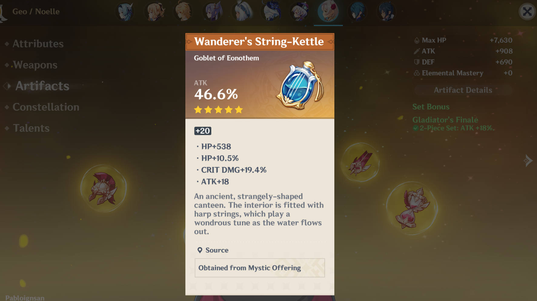 >>553949738Im assuming that noelle was stacked at one point and he just swapped out artifacts. Unless you're telling me his other characters are like this.