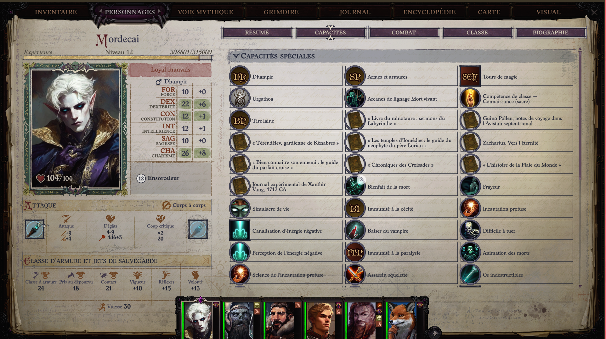 >>553944258I'm not French, just learning the language.Aside from that, sometimes I'm in the mood to build a clichéd character. And Mordecai seemed fitting for a male dhampir to me.Btw I often get the most attached to the joke/cringe characters I make. Weird.>>553944298I can't remember right now if Urgathoa gives reactivity especially to dhampirs, I meant it more in a general because posting the screenshot I remembered that my dhampir had her as his patroness.