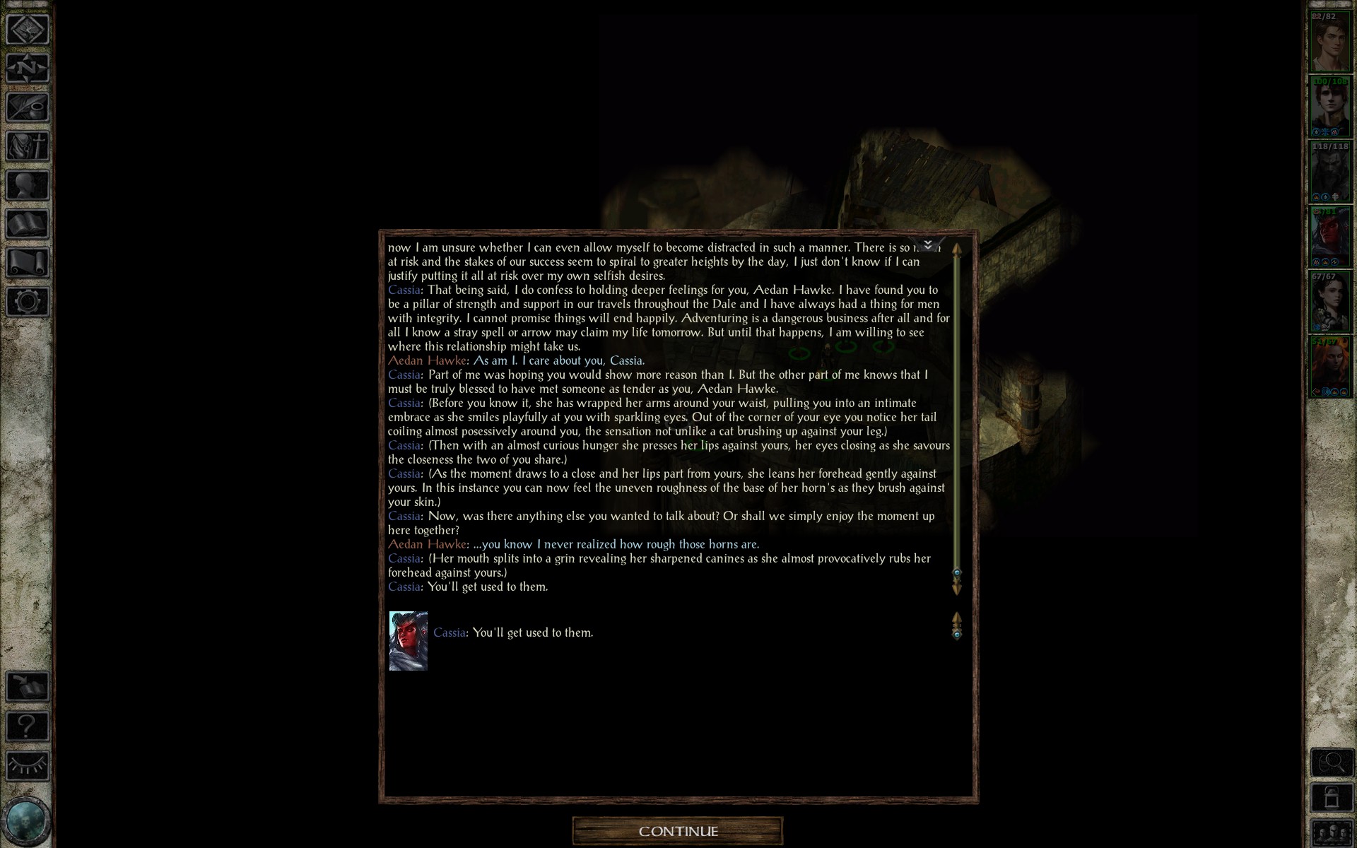 Imoen, Orin and Bethany should have been smoochable.