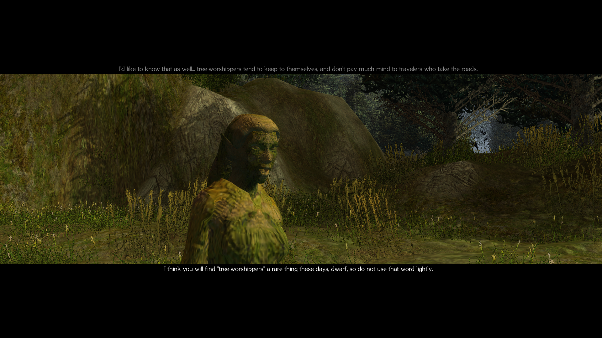 >>553996456No problem, I will continue for a while to play in German. Btw. "Du/dir/dein" is only used in the gameplay texts (menus and descriptions) as well as in the non-dialogue texts in dialogues. Dialogues are mostly in the archaic "Ihr" form. Last night I played until I met Lann and Wenduag, and I have to say, the language isn't bad. Hulrun, Terendelev and Camillla talk a bit posh, understandably, but Sheela, Anevia, Lann and Wenduag speak very casual (as in, German-translation fantasy casual). It's typical for such settings and fits very well. For now, I would say the translation is on par with native German fantasy content.>>553996561>I guess this is like "you" vs "thee" etcYes. We have "du" and "Sie", where the first is colloquial and the second is modern-polite. "Ihr" is like thee, as in, archaic-polite.