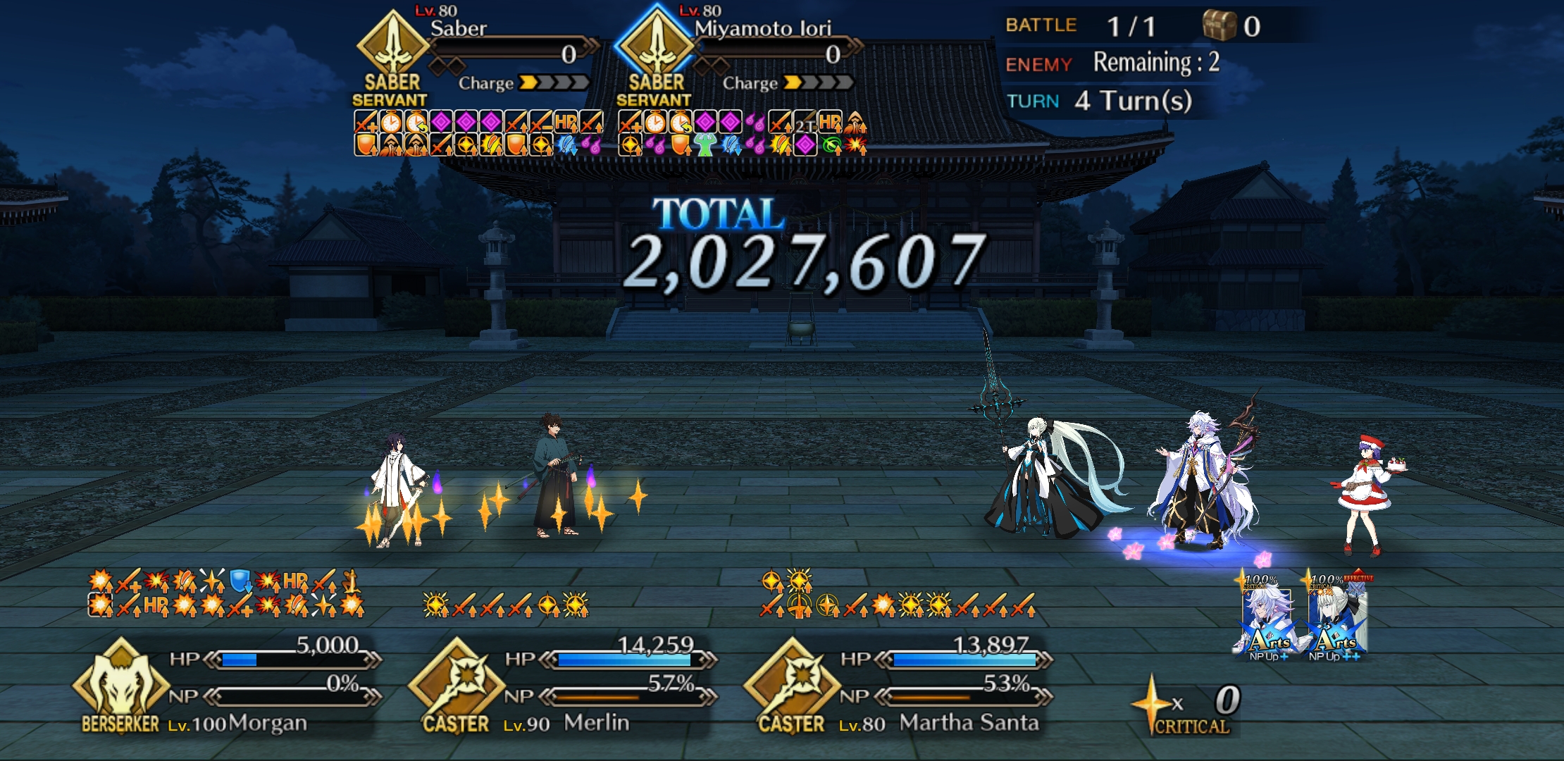 >>554058712Himiko's NP increases overcharge, so I get a lot more mileage from spamming Merlin and Castoria's NP. For the crits sure I have lots of options too, but her NP overcharge is what makes her almost unbeatable unless there is buff removal