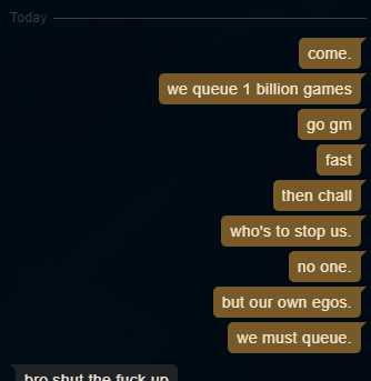 >>553964825Chill brah just ignore that shit, dont care too much about winning, care about learning and having fun, who cares if you're iron, platinum, or master, you're not making money off this, you're not a streamer or a pro, take the fun route instead