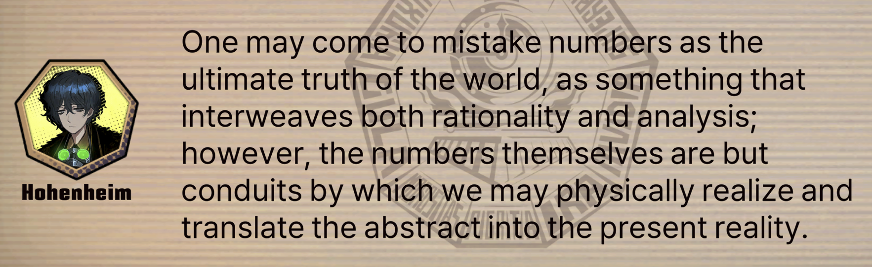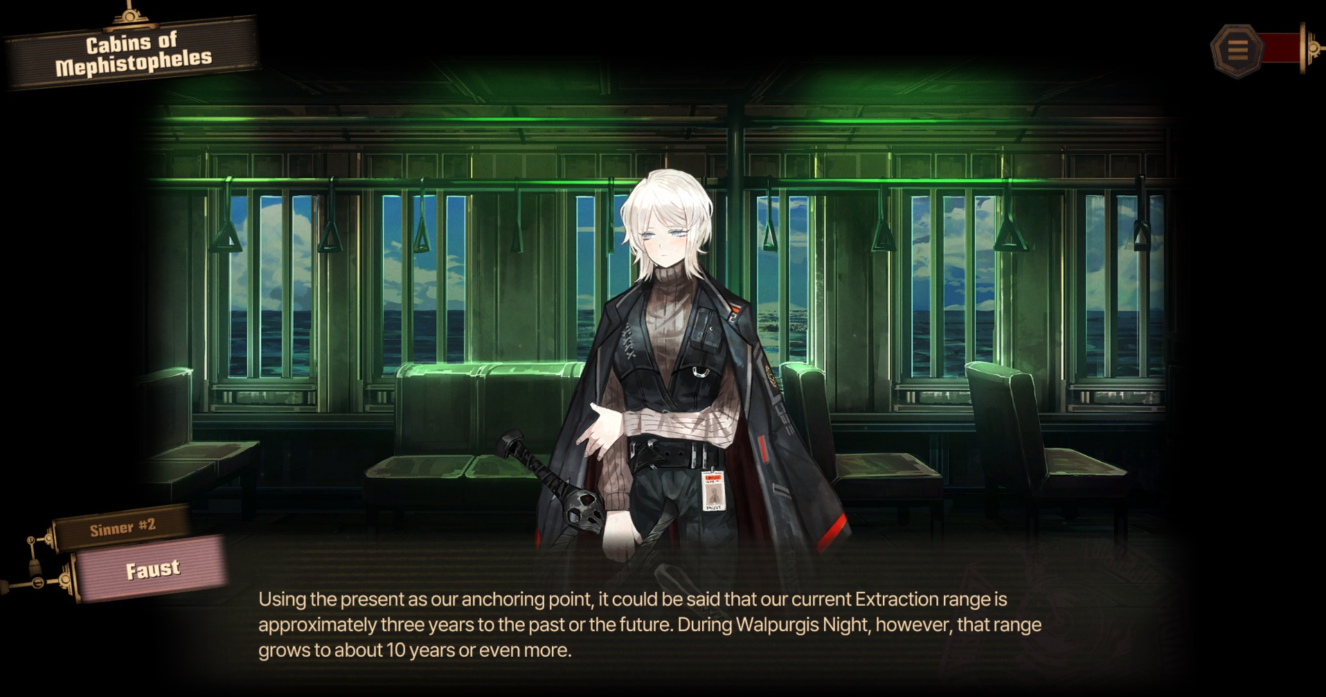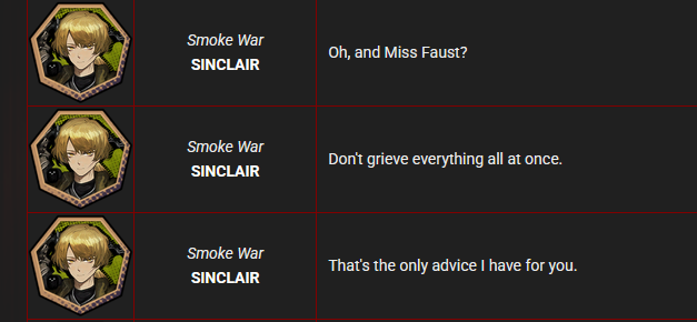 >Faust? Ishmael? Wow, I sure am glad I only encountered you two. If I ran into some of the other Sinners, I'm not sure if I'd want to leave.What did the Green Damnation mean by this?
