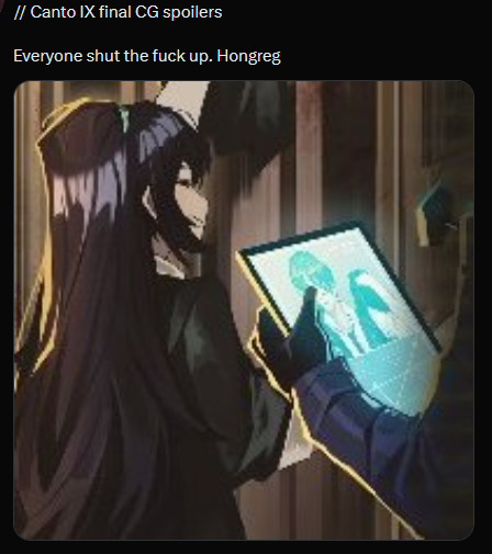 its interesting how little focus ryoshu actually got in her own canto. realistically speaking she just kinda got ragebaited then ran a bunch of gauntlets until she went insane then just kinda got over it, the end.
