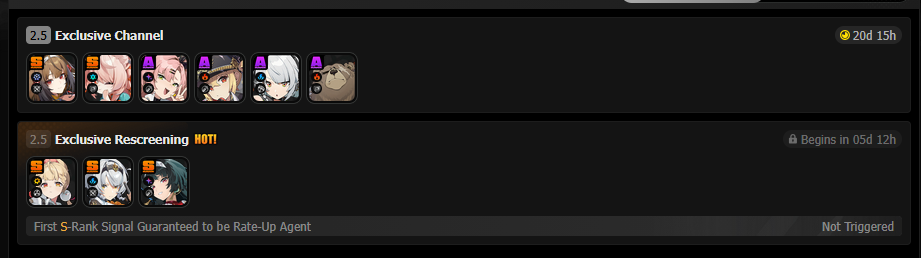 Previous: >>553949928 >NewsAgent Record | Ariahttps://www.hoyolab.com/article/43039871Agent Record | Sunnahttps://www.hoyolab.com/article/43037944Version 2.5 Special Programhttps://youtu.be/Ldeqt2WMiYMTGA 2025 Special Videohttps://youtu.be/X-g1N9mNjzs >Newest Trailer/Teaser/Character demohttps://youtu.be/35fRoOYhE6Y (EN)https://youtu.be/BSKG5nhlj5s (JP)https://youtu.be/D_MtaEZRy3E (EN)https://youtu.be/eJBlfglfs-4 (JP)https://youtu.be/9Lshum4Peqw (EN)https://youtu.be/oCcNiUZ5ogU (JP)https://youtu.be/TU5Bt8MLPjk (EN)https://youtu.be/bviZmH3w5ew (JP) >Upcoming Events for 2.5https://zenless.hoyoverse.com/en-us/news/161728All-New Program 12/29 - 02/05Special Visitor 12/29 - 02/09Potential Hypothesis New Chapter Reforged 12/29 - 02/09Sword Seeker Chronicles 12/31 - 02/05Joint Investigation: The Divine Maze 01/03 - 01/22Shadow Riptide Clash 01/09 - 01/26Wish Filing Station 01/14 - 02/02Advanced Bounty: Area Patrol 01/16 - 01/21"En-Nah" Into Your Lap 01/21 - 02/05Angels and Delusions of Muse 01/21 - 02/05Data Bounty: Combat Simulation 01/30 - 02/04Angels of Delusion Training in Progress 01/30 - 02/09 >Redeemable codes (claimable in-game or online)https://zenless.hoyoverse.com/redemptionZENLESSGIFTZZZCREATOR25ZZZ25MINAZHAOISFREE MEETTHEVOIDHUNTERShunguangWinterGiftZZZ20265OZ2HDP95I >Resources and useful linkshttps://rentry.org/zzzlinkshttps://rentry.org/ZZZ-Friendshttps://rentry.org/ZZZ-Guilds >/zzz/ OP pastebin (use this if making new thread):https://pastebin.com/PzbMf13P