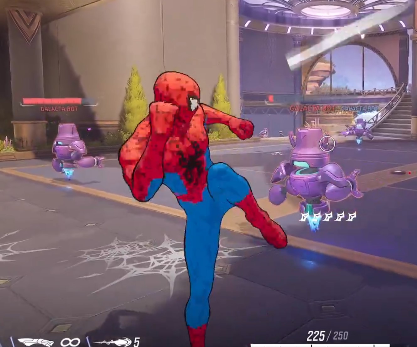 So the new spidey team up if you miss leaves a tiny web on the ground, like maybe a foot or two in diameter before blowing up.That's cool I guess but probably worthless. Seems to be mostly flavor that it's from peni.