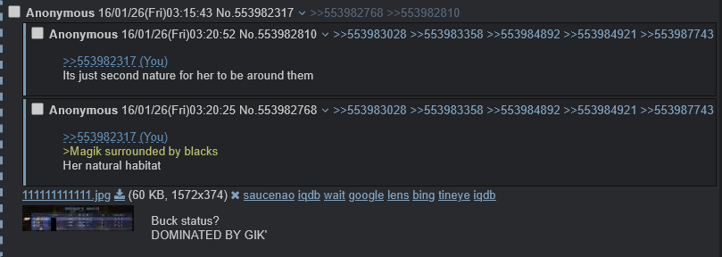 >>554027402>2-4 people erping with futa magik/luna not even 20 post above>"there's no troons anon!"Here's your (you) anon.