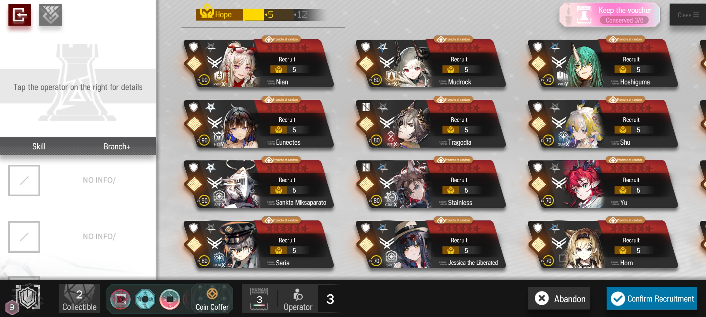 [1/2-1/16][Standard]6* Guard Zuo Le, 6* Guard Mlynar (Shop), 5* Sniper Greyy the Lightningbearer, 5* Vanguard Poncirus, 5* Caster Santalla (Shop)