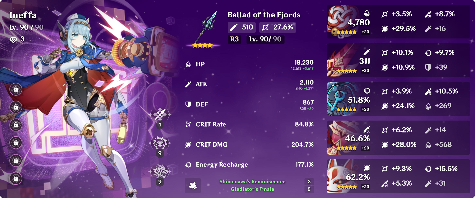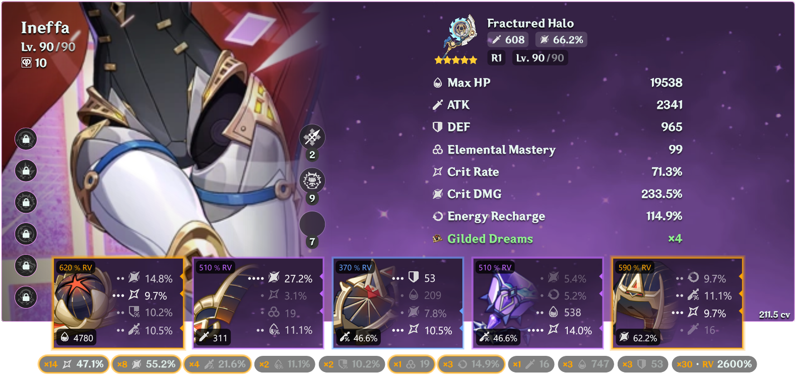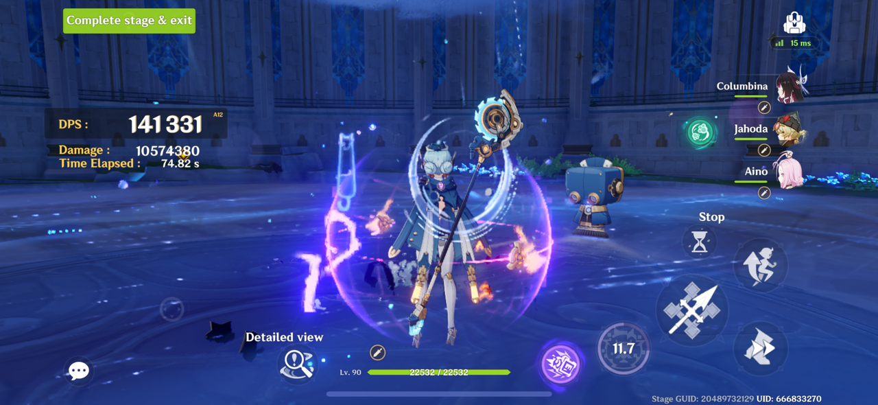 Noelle DPS test. Probably would be higher if I changed Bina's artifact to SMS or Morningstar? She's currently on Night Sky.