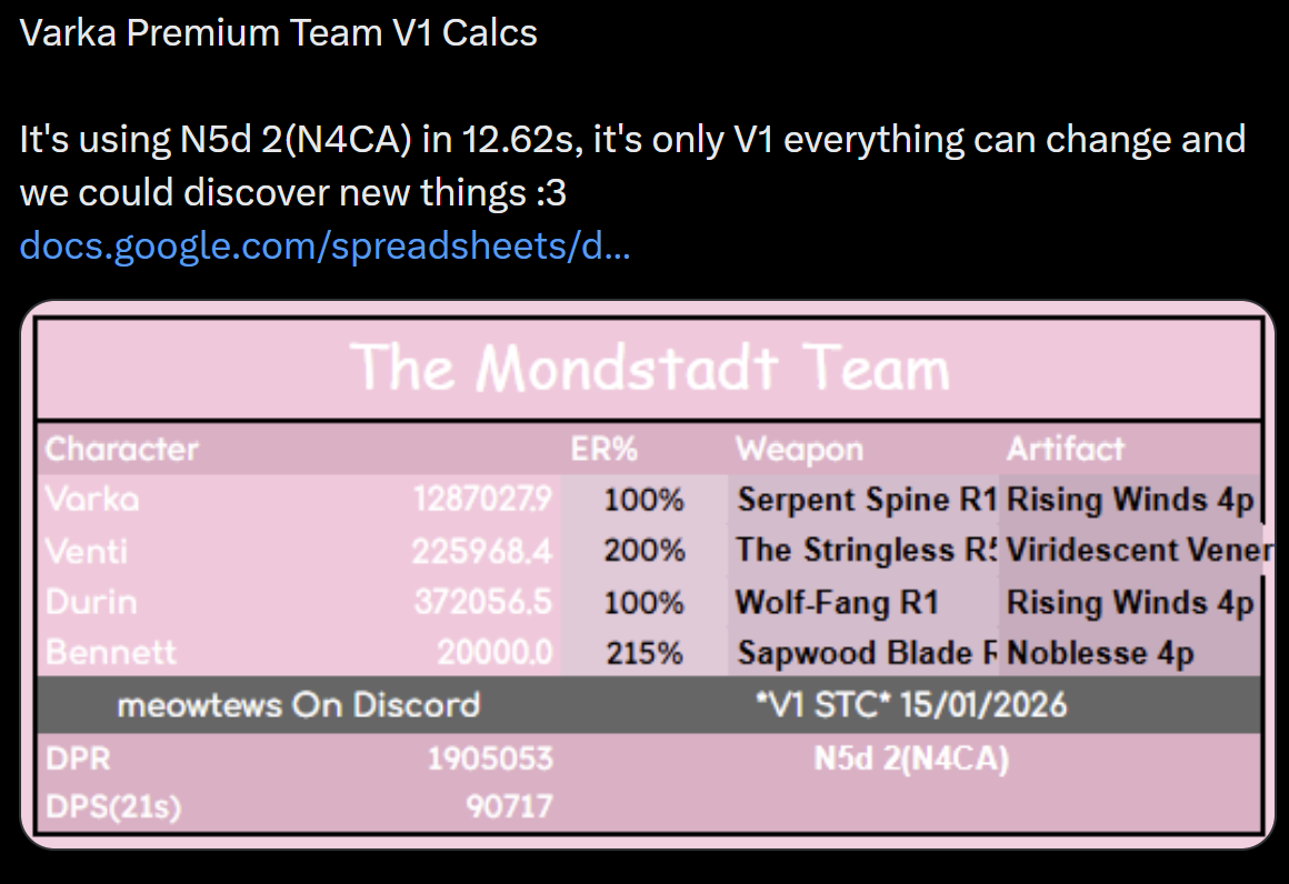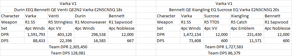 Whats your planned Varka team?