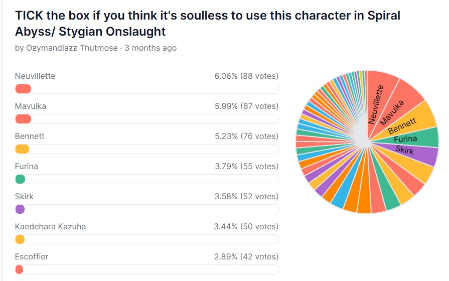 >>554009237The whole soul vs soulless thing is kind of a meme in my opinion. As such all I did was vote for every single male character.
