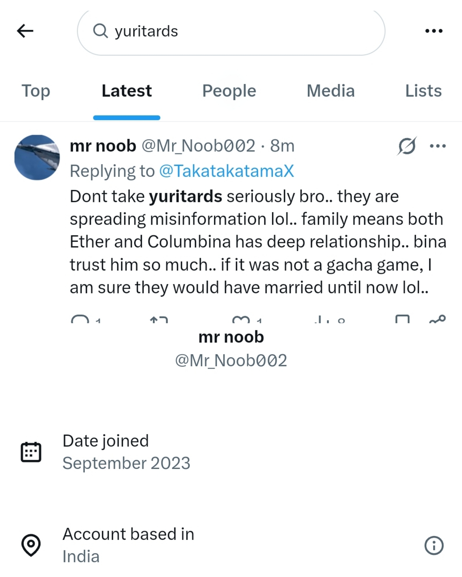 >>554008754indian of course all of them are lolejust go type "yuritard" on Xsee all of the latest tweets and check the location most of them are from Philippines, Malaysia, India, and Cambodia loleliterally the brownest of the brown
