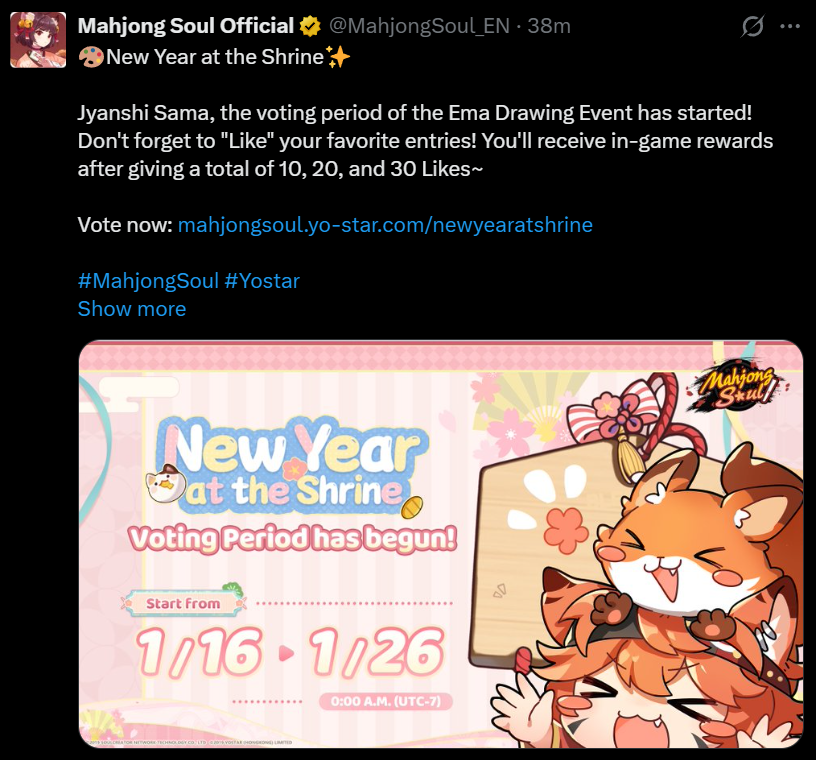 >>553903028>New to Mahjong? Play here (tutorial included):https://mahjongsoul.game.yo-star.com>Interested in this general or in Mahjong? READ THIS:https://repo.riichi.moe>Watch M-League (Monday, Tuesday, Thursday, Friday 19:00 JST):https://abema.tv/now-on-air/mahjong>/mjg/ booru:https://mjgbooru.com/>tourneyhttps://docs.google.com/document/d/1oq9S3W7sx2Qwr4ZWEgos468BAi81RkeHbhncAQwQJ14>registrationhttps://forms.gle/aEjaEncktHScYp1i6>sheethttps://docs.google.com/spreadsheets/d/1qNGCJt_ajwUD-ZGBBjIVGyEUSa5yQ1o7BvLAyKH9ZM0