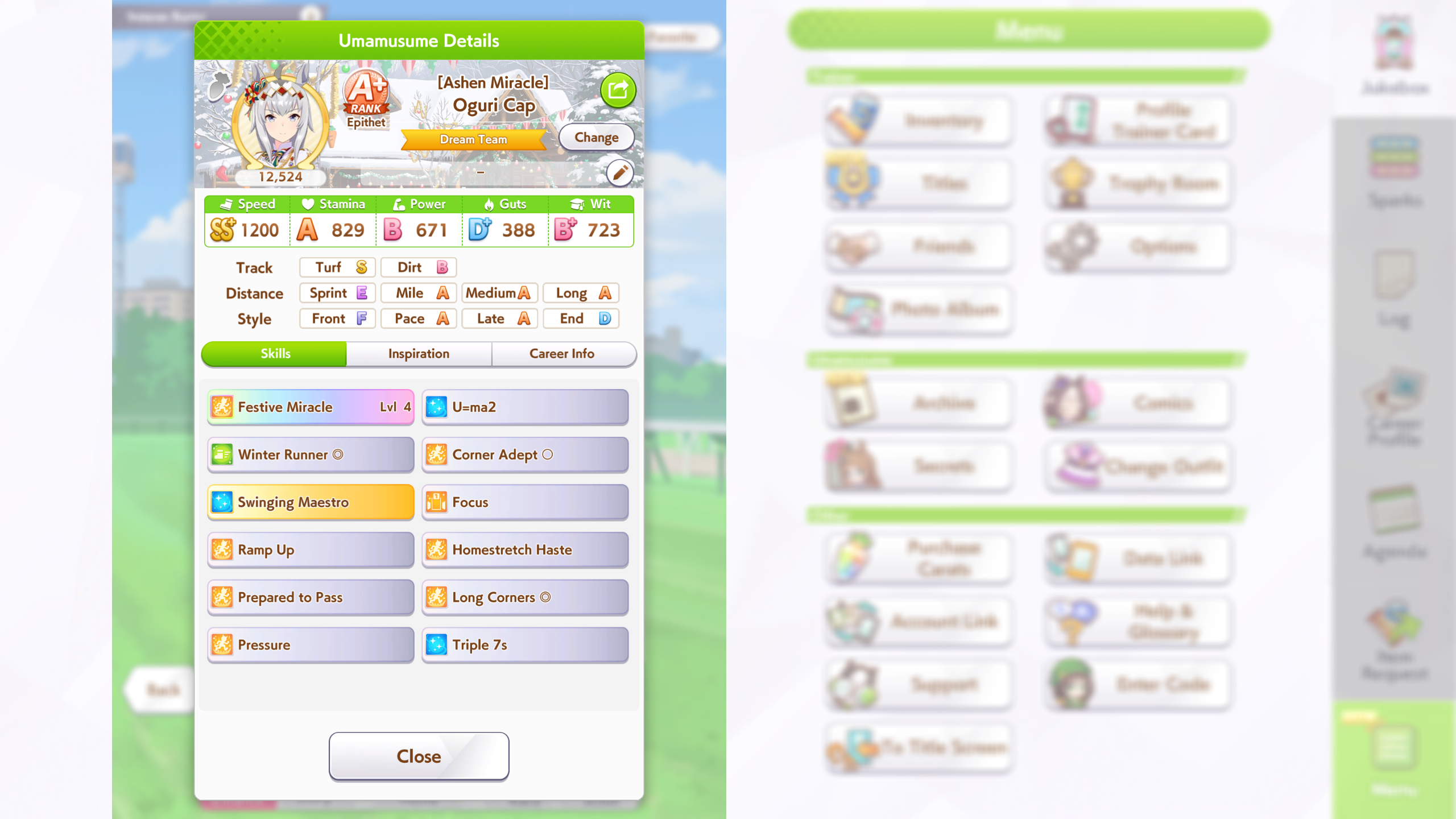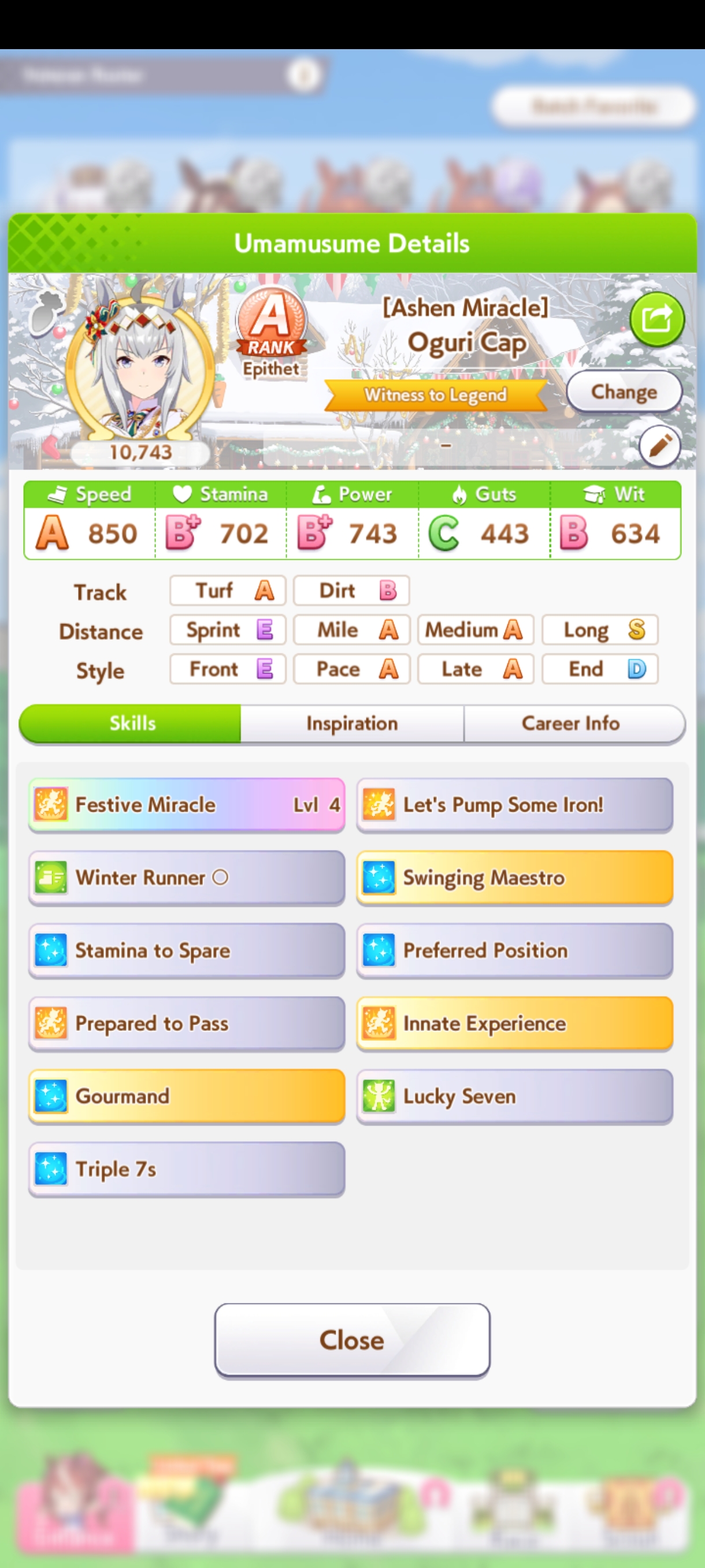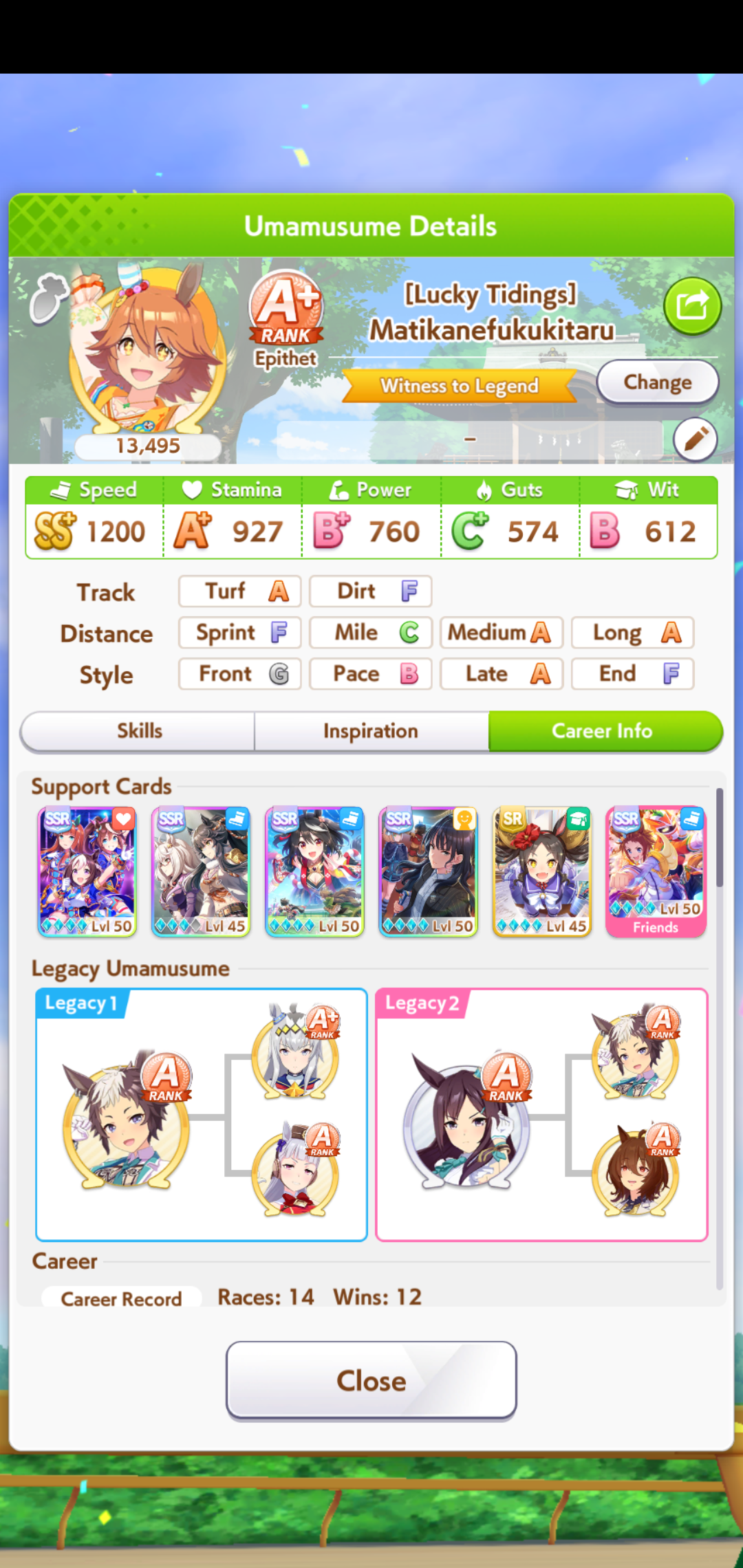 I'm done with bakushin, this'll have to do she never gets distance or turf on good runs and gets a fucking mood down/sleep deprived every other turn