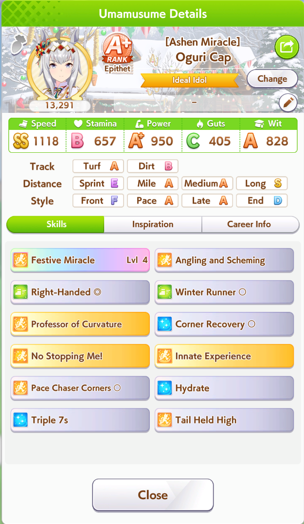 Previous: >>554005963>Global Game NewsLink your account to Cygames iDCurrent Scenario: Aoharu Hai aka "Unity Cup"Current Rate Up Trainee: Christmas Oguri Cap (3* alt), Christmas Biwa Hayahide (3* alt), Fine Motion (3*)Current Rate Up Support Cards: Narita Taishin (SSR), Mayano Top Gun (SSR), Manhattan Cafe (SSR), Inari One (SR)01/19 - Sagittarius Cup - Nakayama Turf 2500m01/22 - Tama 3*+Neicha SSR+Ogurin SSR - Legend Races01/27 - New Beginnings Part 101/29 - NY Opera & Haru 3*+Fuku SSR+Ayabe SSRMid February - Capricorn Cup - Chukyo Turf 1200mhttps://umamusume.com/news/100040/https://pages.snep.pw/uma/anni-skill-changes/>JP Game NewsCurrent Rate Up: Bubble Gum Fellow (3* Alt), Stay Gold (3*), Gentildonna (3*), Orfevre (3*), King Halo (SSR), Satono Diamond (SR)New Scenario "Yukoma Hot Spring" releasedTimeline: https://uma.moe/timelineCygames Webstore: https://webstore.cygames.com/en/umamusume_en/>Thread Clubshttps://rentry.co/umaglobalclublistYou must be E3 (20k points) to join a circle. Apply with /uma/ or /vg/ in your profile or post ID in the thread.>All Guides & Resourceshttps://rentry.org/uma26Game databasehttps://gametora.com/umamusume (Click the gear to switch between JP / global server info)A basic guide for newfagshttps://rentry.org/umaglobalFind networks if your region is blocked from the game or clienthttps://www.umavpn.top/93Seiyuu & Concertshttps://rentry.org/umstUma Texthttps://umareader.idsmile.xyz/