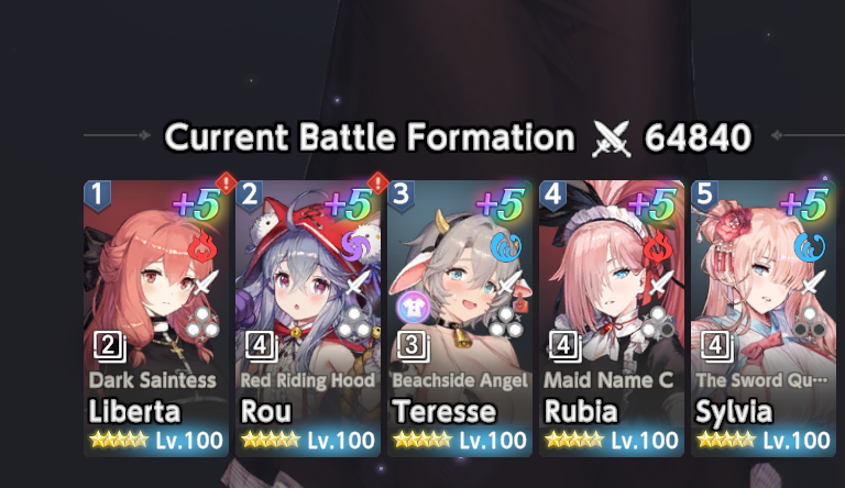 turn 1: RRH Rou> Liberta >Beach Teresse> Maid Rubia up front> Sword Sylvia.