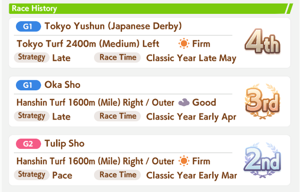 An uma musume's full potential is only brought out when they have their own exclusive trainers. The reason why:>trainers with multiple umas (multimedia stuff, main story line) rarely overturns IRL historical results>trainers who trains a single uma (in-game career story) can overturn historical results (bourbon winning kikka, thus winning the triple)>umas with no trainers (rivals in in-game career stories)