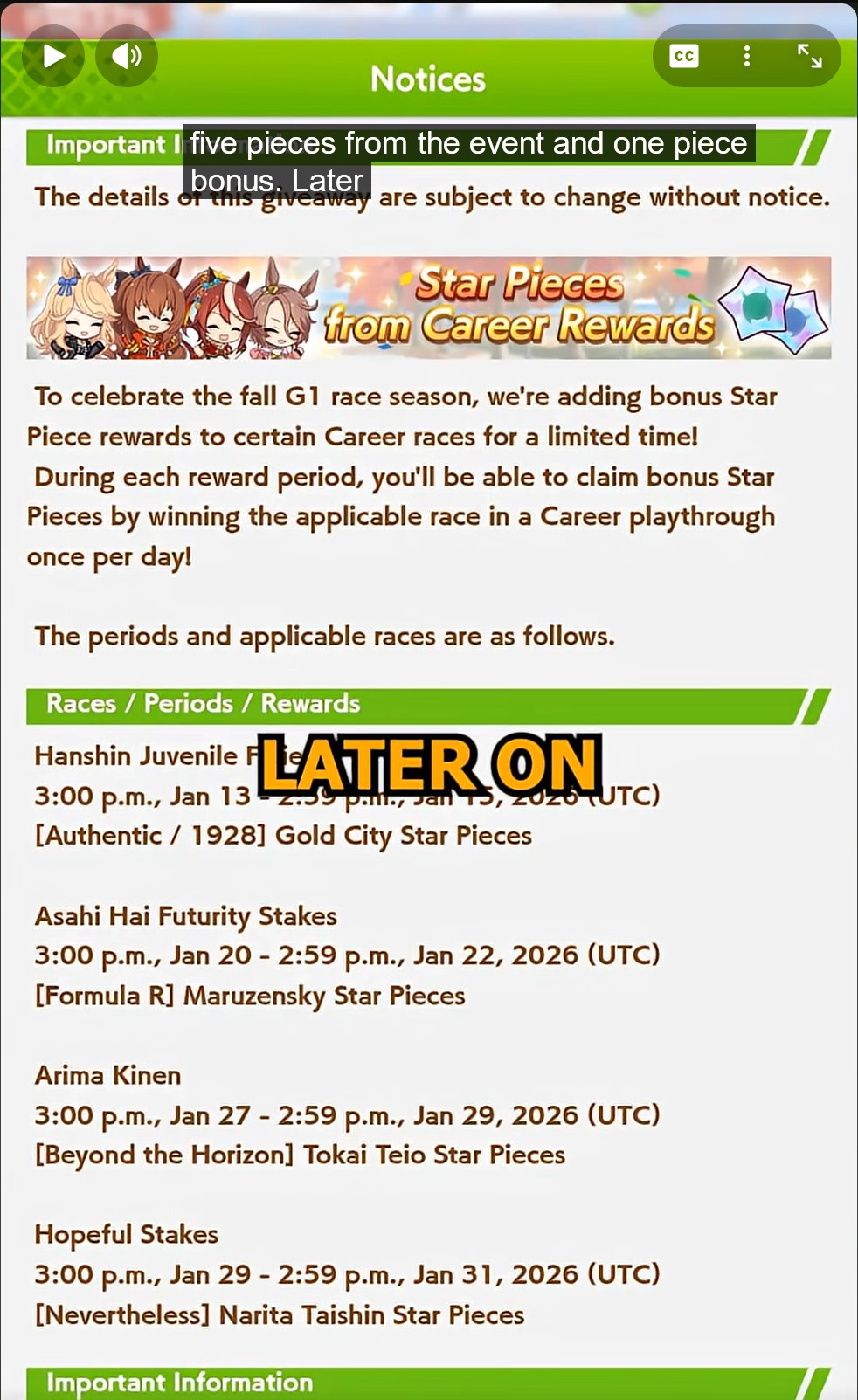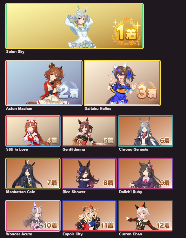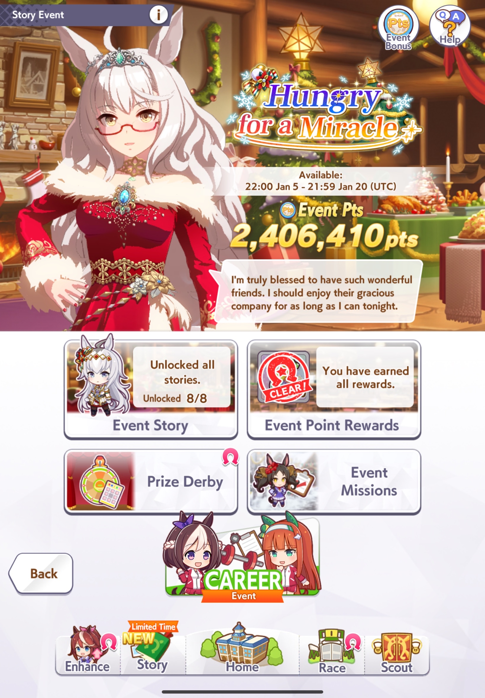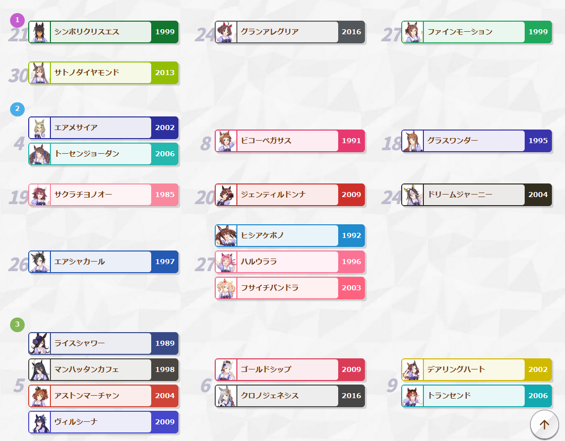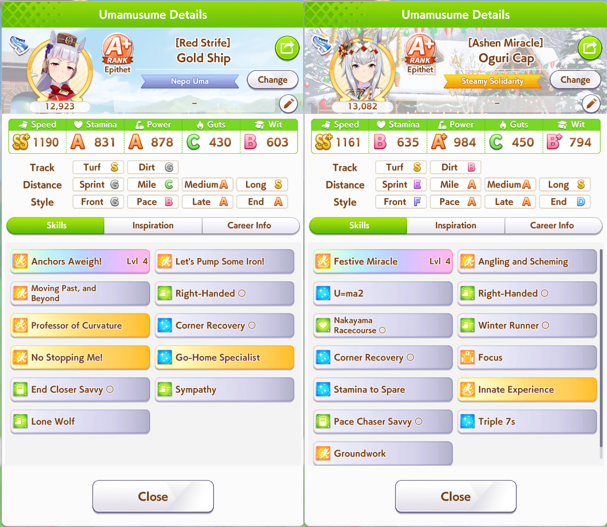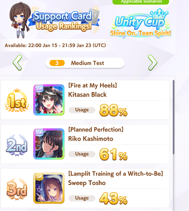 Previous: >>554018707>Global Game NewsLink your account to Cygames iDCurrent Scenario: Aoharu Hai aka "Unity Cup"Current Rate Up Trainee: Christmas Oguri Cap (3* alt), Christmas Biwa Hayahide (3* alt), Fine Motion (3*)Current Rate Up Support Cards: Narita Taishin (SSR), Mayano Top Gun (SSR), Manhattan Cafe (SSR), Inari One (SR)01/19 - Sagittarius Cup - Nakayama Turf 2500m01/22 - Tama 3*+Neicha SSR+Ogurin SSR - Legend Races01/27 - New Beginnings Part 101/29 - NY Opera & Haru 3*+Fuku SSR+Ayabe SSRMid February - Capricorn Cup - Chukyo Turf 1200mhttps://umamusume.com/news/100040/https://pages.snep.pw/uma/anni-skill-changes/>JP Game NewsCurrent Rate Up: Bubble Gum Fellow (3* Alt), Stay Gold (3*), Gentildonna (3*), Orfevre (3*), King Halo (SSR), Satono Diamond (SR)New Scenario "Yukoma Hot Spring" releasedTimeline: https://uma.moe/timelineCygames Webstore: https://webstore.cygames.com/en/umamusume_en/>Thread Clubshttps://rentry.co/umaglobalclublistYou must be E3 (20k points) to join a circle. Apply with /uma/ or /vg/ in your profile or post ID in the thread.>All Guides & Resourceshttps://rentry.org/uma26Game databasehttps://gametora.com/umamusume (Click the gear to switch between JP / global server info)A basic guide for newfagshttps://rentry.org/umaglobalFind networks if your region is blocked from the game or clienthttps://www.umavpn.top/93Seiyuu & Concertshttps://rentry.org/umstUma Texthttps://umareader.idsmile.xyz/