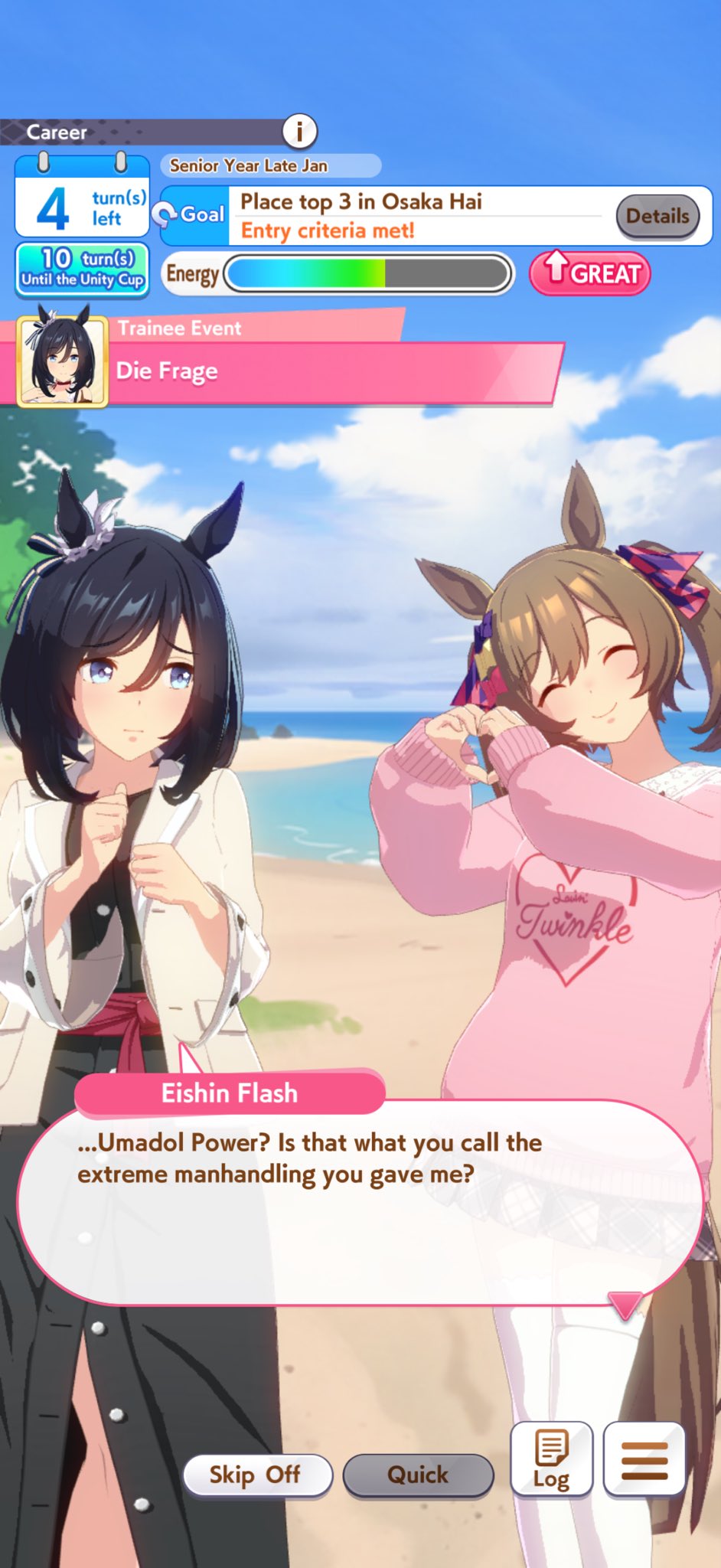 >>554065539>Your new favorite Cinderella Gray characterhaha...I really don't like how they made her just another oguri fangirlof course it didn't help that mile championship namek was a slog to get through
