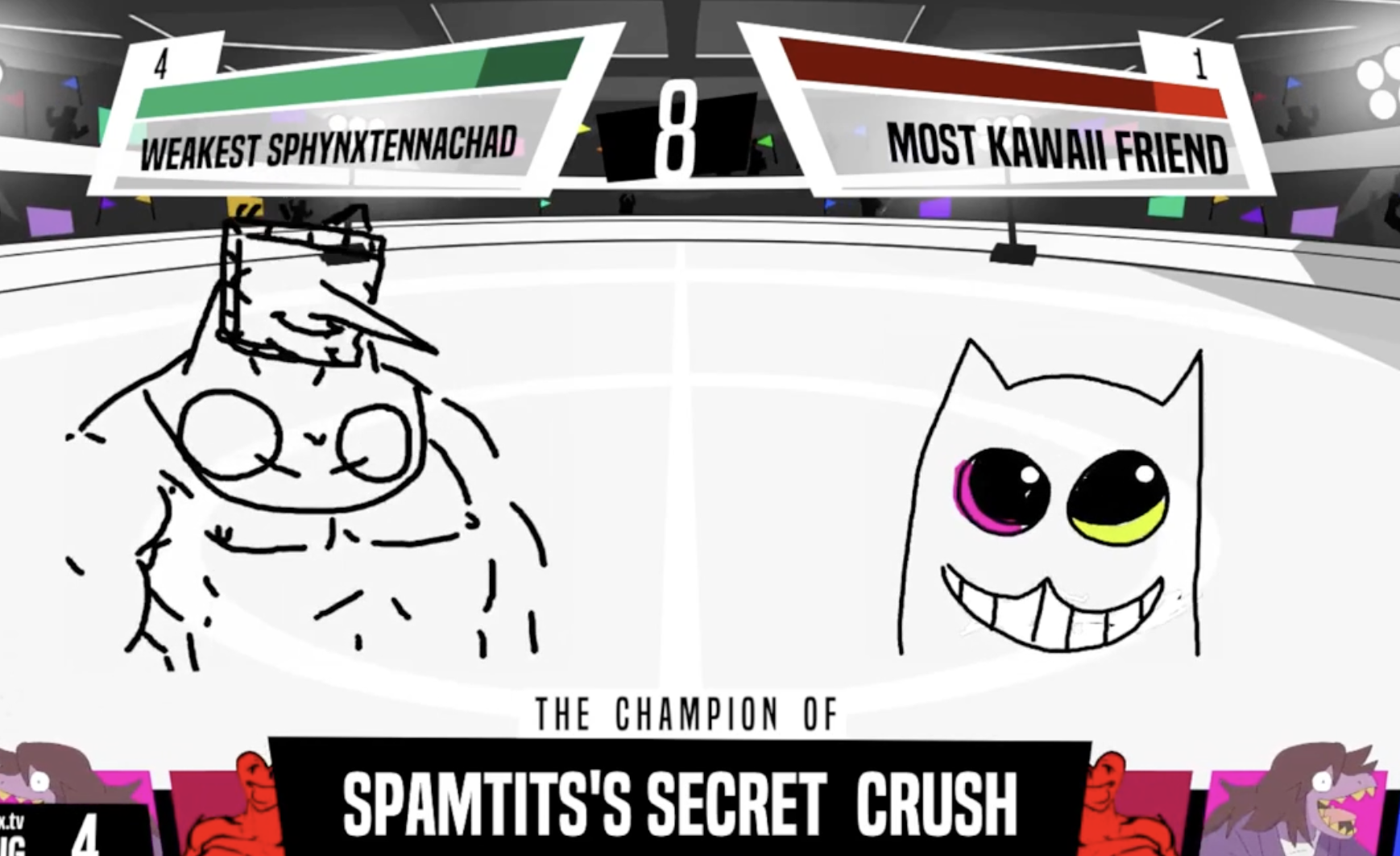 Official /utg/ Jackbox game night player rankings!- Based tier -spamtits - Abortion.gif and incredibly gassy tenna were the funniest things i've seen all year. Despite this they seem to never win. Style reminds me of the whiteboard pippins OCs.andasriel - Undisputed champion of the drawing games. Smartest person in the whole thread. Gives off designated driver chauffeuring a bunch of drunk retards energy. Based as fuck.spamy - Good at shading in art in jackbox's crappy drawing ui.snowdin999999 - Really good line art. Doesn't draw muscles, only fat flabs.tennasfarts3 - Makes high quality art but only when they feel like it. Draws really funny faces. Most immature person alive.ice-e peeza - HE'S GETTING ANGRIER HE'S GETTING ANGRY EYES!TVfucker - Cannot fool anyone in the fibbage final round. Makes so many thirsting for Tenna jokes i'm not sure they're joking anymore.Fatspamton - I cannot remember a single thing they drew but i'm pretty sure it was really good.I literally cannot tell the difference between anyone else you guys all type and draw the same.Every single person that has played has made me do the nose exhale laugh at least once.If you are a regular and your name isn't on the list then I just forgot to add you LOL.- Epic tier -I don't get how people can identify posters based on the way they type.I regret making the jackbox discord server.Some of the people in utg give me actual nightmares.Nightmare blunt rotation.If you ever manage to decrypt what iglmvw is I will run away and never come back. It's also the longest lasting burner account i've ever made.- Shit tier -Randoms that draw low effort dicks and stick figures.